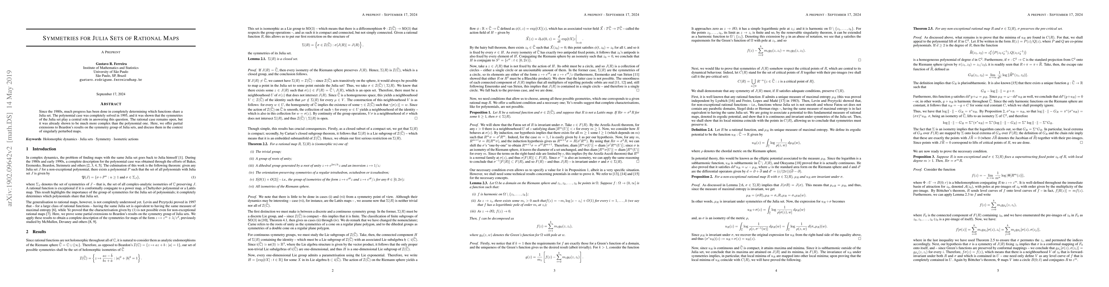 Since the 1980s, much progress has been done in completely determining which functions share a Julia set. The polynomial case was completely solved in 1995, and it was shown that the symmetries of the Julia set play a central role in answering this question. The rational case remains open, but it was already shown to be much more complex than the polynomial one. Here, we offer partial extensions to Beardon's results on the symmetry group of Julia sets, and discuss them in the context of singularly perturbed maps.
