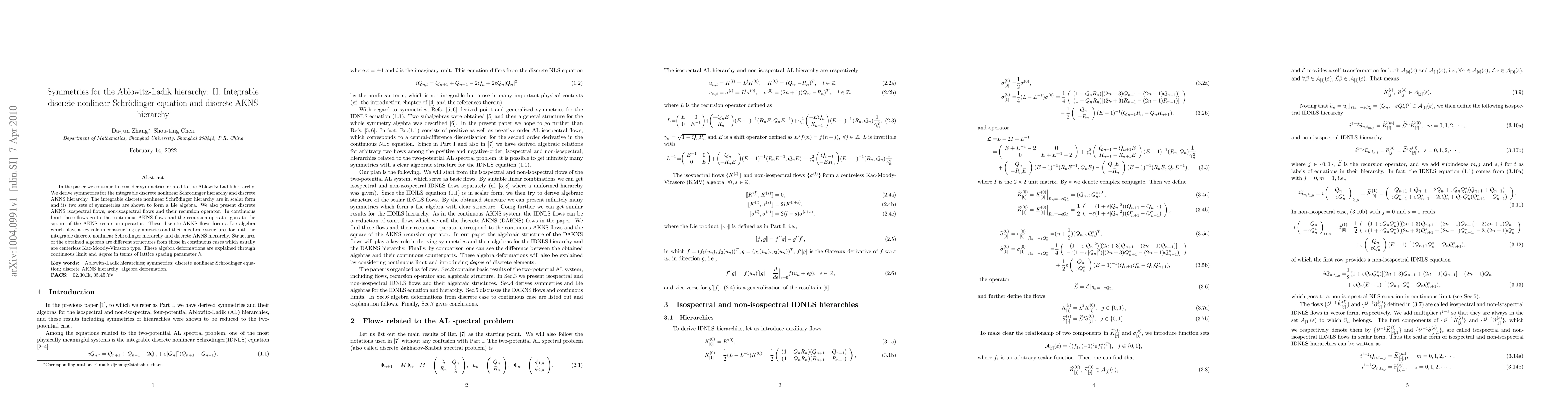 In the paper we continue to consider symmetries related to the Ablowitz-Ladik hierarchy. We derive symmetries for the integrable discrete nonlinear Schr\"odinger hierarchy and discrete AKNS hierarchy. The integrable discrete nonlinear Schr\"odinger hierarchy are in scalar form and its two sets of symmetries are shown to form a Lie algebra. We also present discrete AKNS isospectral flows, non-isospectral flows and their recursion operator. In continuous limit these flows go to the continuous AKNS flows and the recursion operator goes to the square of the AKNS recursion operartor. These discrete AKNS flows form a Lie algebra which plays a key role in constructing symmetries and their algebraic structures for both the integrable discrete nonlinear Schr\"odinger hierarchy and discrete AKNS hierarchy. Structures of the obtained algebras are different structures from those in continuous cases which usually are centerless Kac-Moody-Virasoro type. These algebra deformations are explained through continuous limit and \textit{degree} in terms of lattice spacing parameter $h$.