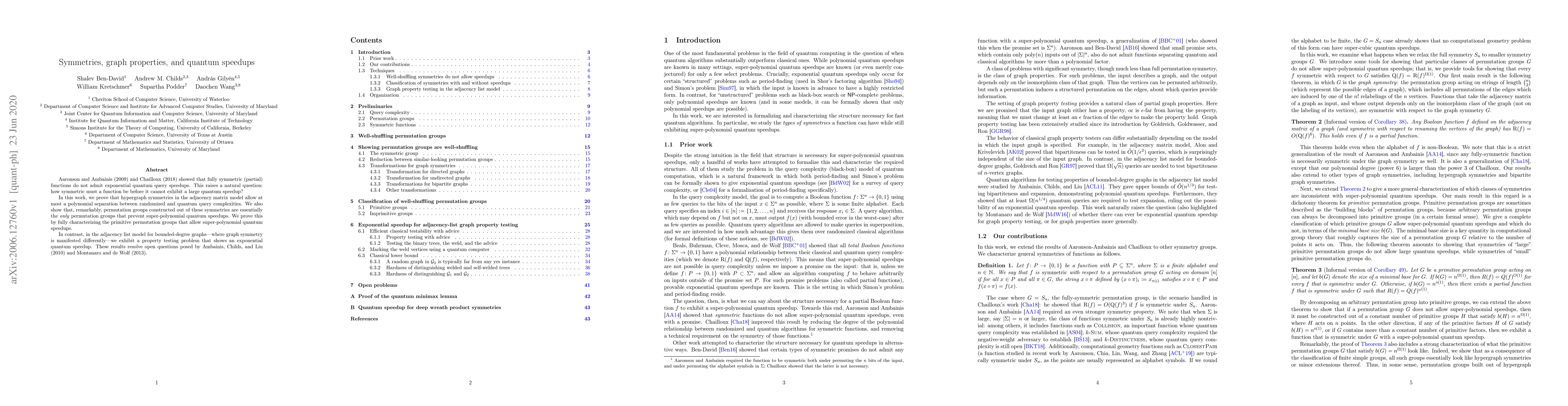 This paper investigates the relationship between function symmetries and quantum speedups, proving that hypergraph symmetries limit quantum speedups to polynomial separations. It identifies permutation groups derived from these symmetries as the primary factors preventing super-polynomial quantum speedups, while contrasting results in the adjacency list model show exponential quantum speedups for certain problems.