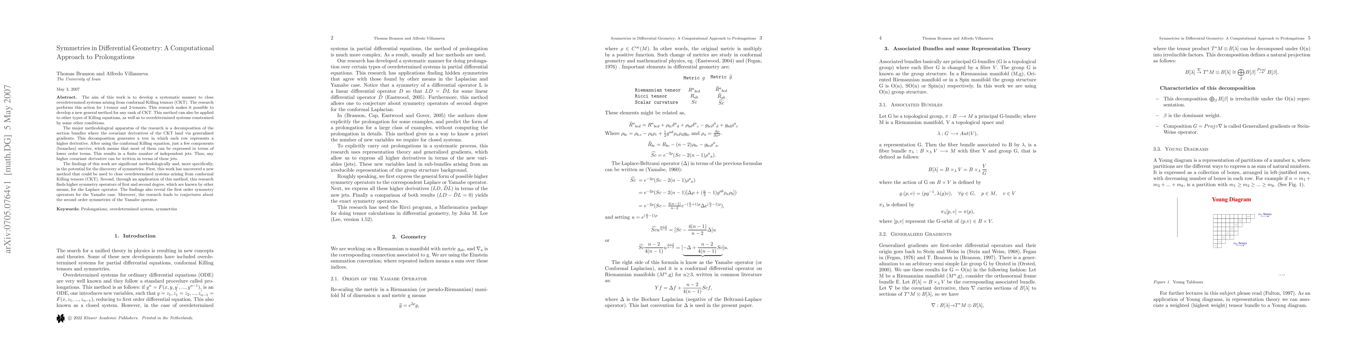 The aim of this work is to develop a systematic manner to close overdetermined systems arising from conformal Killing tensors (CKT). The research performs this action for 1-tensor and 2-tensors. This research makes it possible to develop a new general method for any rank of CKT. This method can also be applied to other types of Killing equations, as well as to overdetermined systems constrained by some other conditions. The major methodological apparatus of the research is a decomposition of the section bundles where the covariant derivatives of the CKT land via generalized gradients. This decomposition generates a tree in which each row represents a higher derivative. After using the conformal Killing equation, just a few components (branches) survive, which means that most of them can be expressed in terms of lower order terms. This results in a finite number of independent jets. Thus, any higher covariant derivative can be written in terms of these jets. The findings of this work are significant methodologically and, more specifically, in the potential for the discovery of symmetries. First, this work has uncovered a new method that could be used to close overdetermined systems arising from conformal Killing tensors (CKT). Second, through an application of this method, this research finds higher symmetry operators of first and second degree, which are known by other means, for the Laplace operator. The findings also reveal the first order symmetry operators for the Yamabe case. Moreover, the research leads to conjectures about the second order symmetries of the Yamabe operator.