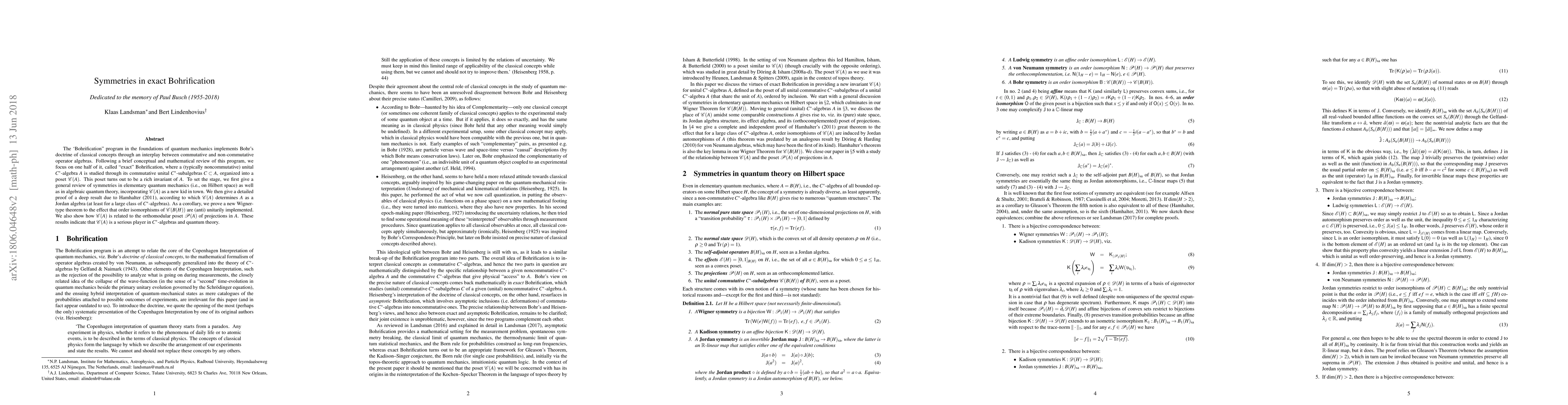 This paper explores symmetries within the framework of exact Bohrification, focusing on how commutative subalgebras of noncommutative C*-algebras serve as invariants. It proves a significant result that these subalgebras determine the algebra as a Jordan algebra and establishes a new Wigner-type theorem for order isomorphisms of operator algebras.