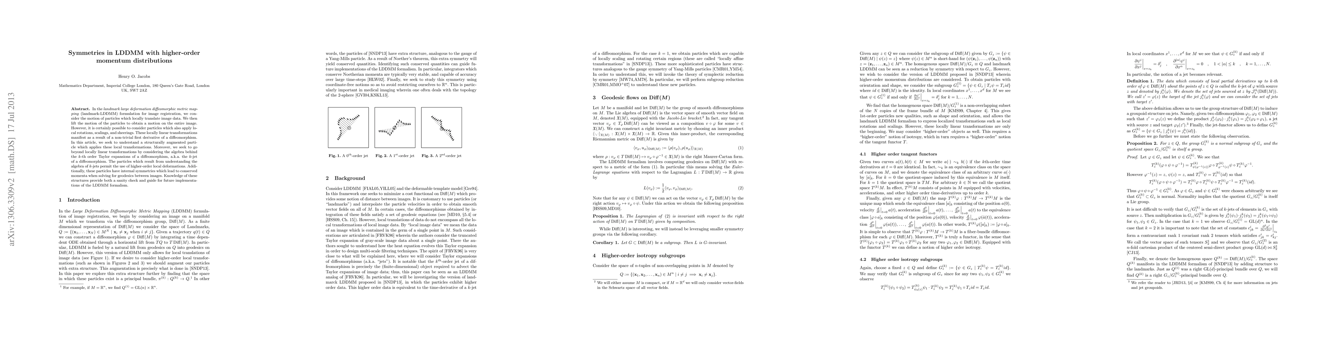 In some implementations of the Large Deformation Diffeomorphic Metric Mapping formulation for image registration we consider the motion of particles which locally translate image data. We then lift the motion of the particles to obtain a motion on the entire image. However, it is certainly possible to consider particles which do more than translate, and this is what will be described in this paper. As the unreduced Lagrangian associated to EPDiff possesses $\Diff(M)$ symmetry, it must also exhibit $G \subset \Diff(M)$ symmetry, for any Lie subgroup. In this paper we will describe a tower of Lie groups $G^{(0)} \subseteq G^{(1)} \subseteq G^{(2)} \subseteq...$ which correspond to preserving $k$-th order jet-data. The reduced configuration spaces $Q^{(k)} := \Diff(M) / G^{(k)}$ will be finite-dimensional (in particular, $Q^{(0)}$ is the configuration manifold for $N$ particles in $M$). We will observe that $G^{(k)}$ is a normal subgroup of $G^{(0)}$ and so the quotient $G^{(0)} / G^{(k)}$ is itself a (finite dimensional) Lie group which acts on $Q^{(k)}$. This makes $Q^{(k)}$ a principle bundle over $Q^{(0)}$ and the reduced geodesic equations on $Q^{(k)}$ will possess $G^{(0)} / G^{(k)}$-symmetry. Noether's theorem implies the existence of conserved momenta for the reduced system on $T^{\ast}Q^{(k)}$.