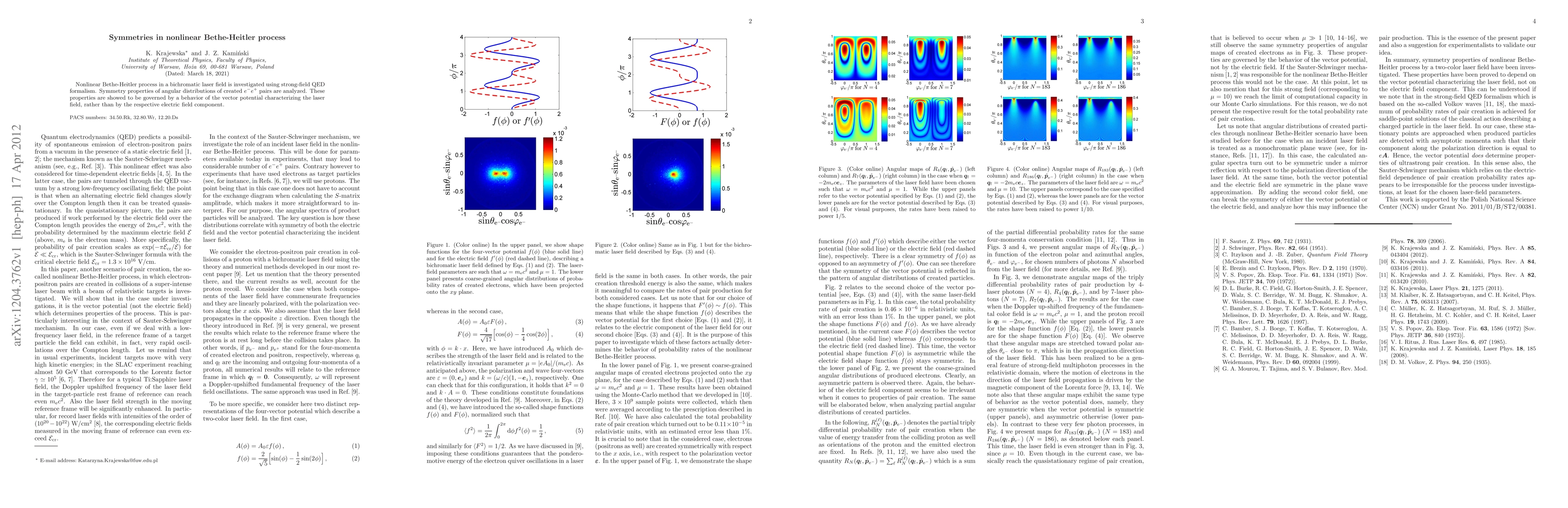 Researchers investigated the nonlinear Bethe-Heitler process in a bichromatic laser field, finding that symmetry properties of created e^-e^+ pairs are governed by the laser's vector potential rather than its electric field component.