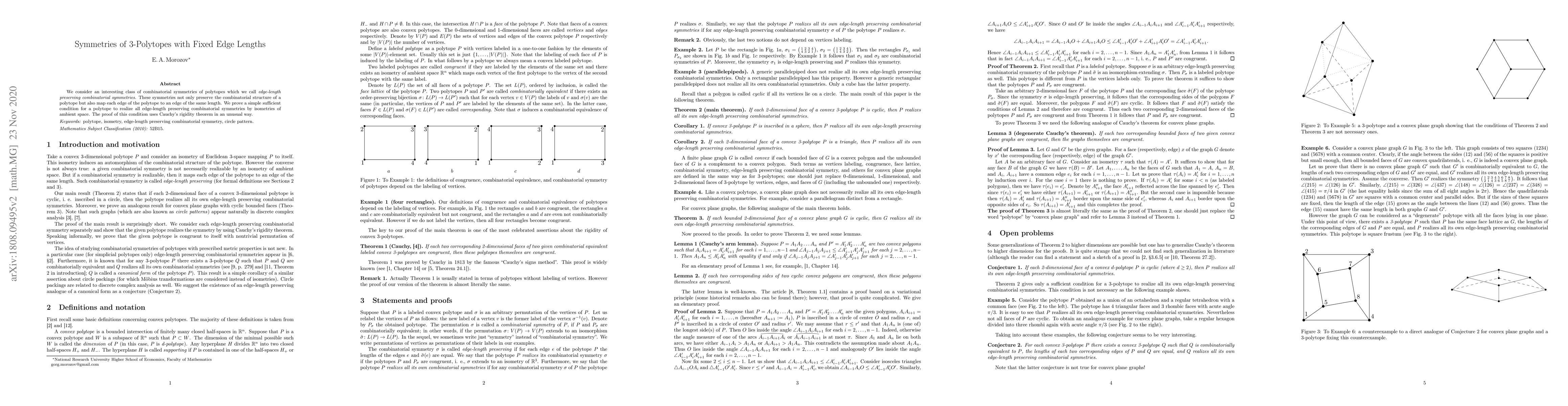 Researchers identify a condition for 3-polytopes to realize all edge-length preserving combinatorial symmetries through isometries of ambient space, leveraging Cauchy's rigidity theorem.