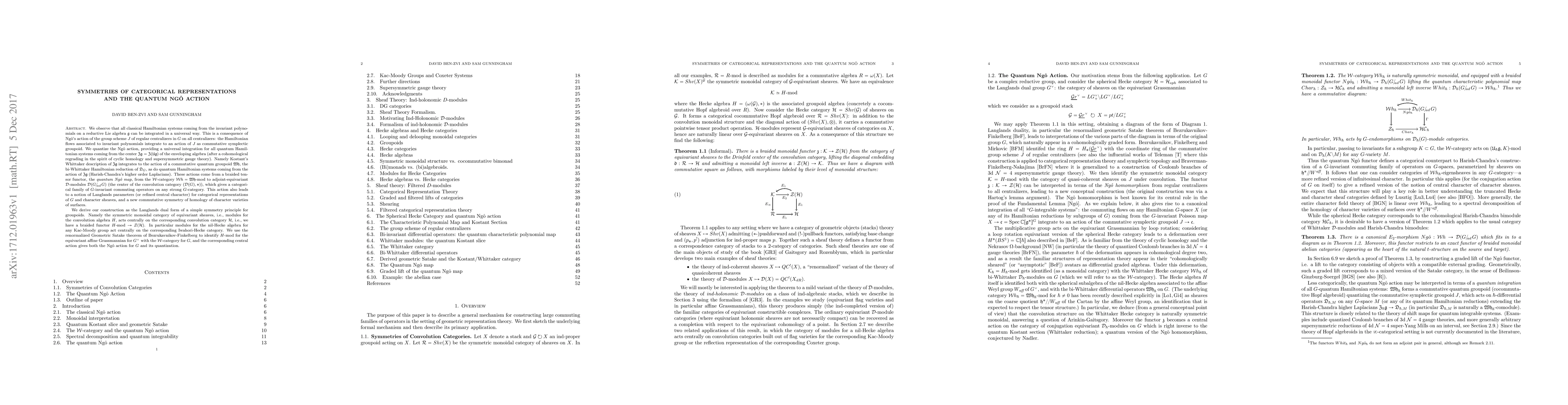 We observe that all classical Hamiltonian systems coming from the invariant polynomials on a reductive Lie algebra g can be integrated in a universal way. This is a consequence of Ng\^o's action of the group scheme J of regular centralizers in G on all centralizers: the Hamiltonian flows associated to invariant polynomials integrate to an action of J as commutative symplectic groupoid. We quantize the Ng\^o action, providing a universal integration for all quantum Hamiltonian systems coming from the center Z=Z(Ug) of the enveloping algebra. Namely we extend Kostant's Whittaker description of Z to the action of a commutative quantum groupoid Wh, the bi-Whittaker Hamiltonian reduction of $D_G$, which also integrates all quantum Hamiltonian systems coming from the action of Z. These actions come from a braided tensor functor, the quantum Ng\^o map, from the W-category (modules for Wh) to adjoint-equivariant D-modules on G, giving a categorical family of G-invariant commuting operators on any strong G-category. This action also leads to a notion of Langlands parameters for categorical representations of G, refined central character for character sheaves, and a new symmetry of homology of character varieties. We derive our construction as the Langlands dual form of a simple symmetry principle for groupoids. Namely the symmetric monoidal category of equivariant sheaves (modules for the groupoid algebra) acts centrally on the corresponding convolution category. In particular modules for the nil-Hecke algebra for any Kac-Moody group act centrally on the corresponding Iwahori-Hecke category. We deduce both the Ng\^o action and its quantization from the case of the Langlands dual equivariant affine Grassmannian using the renormalized Geometric Satake theorem of Bezrukavnikov-Finkelberg.