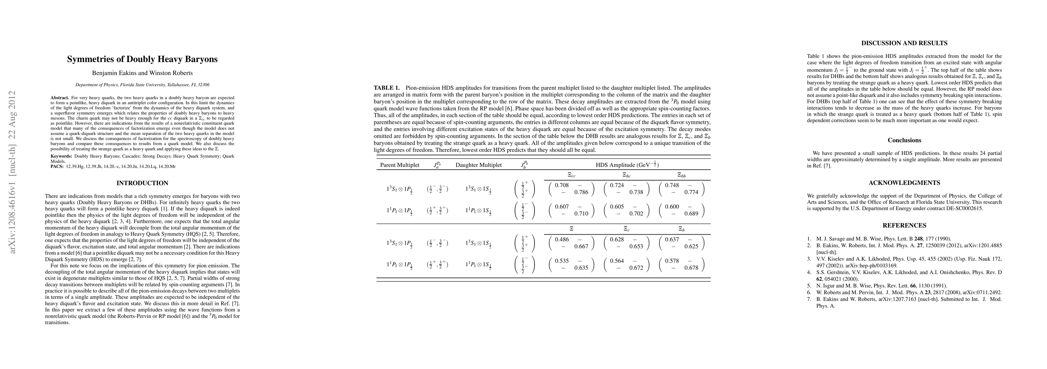 This research presents a small sample of HDS predictions with potential implications for the spectroscopy of doubly heavy baryons.