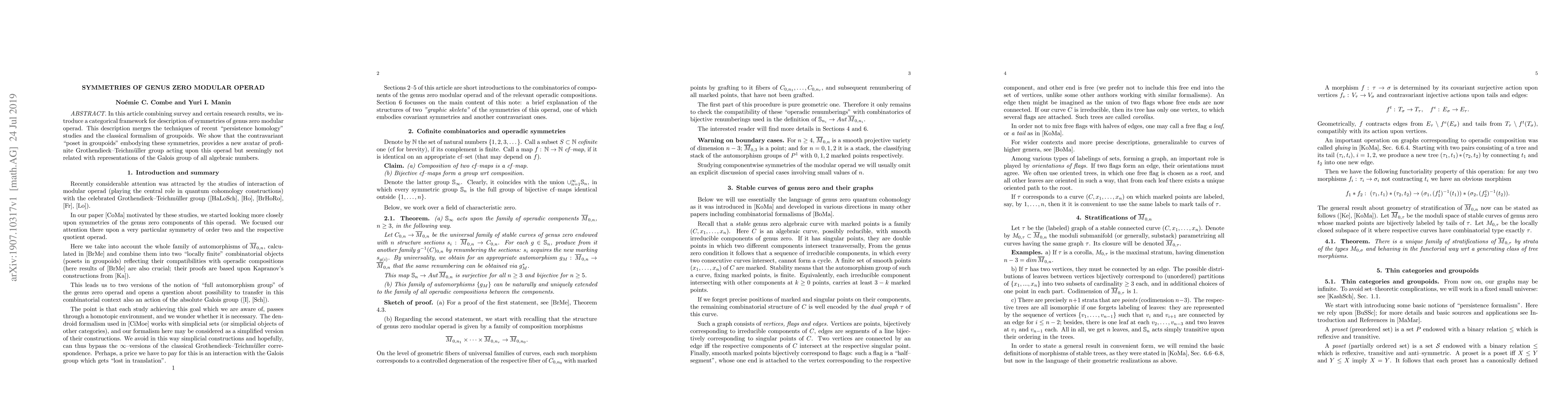 This paper introduces a categorical framework for describing the symmetries of genus zero modular operads, merging persistence homology and groupoid theory. It reveals a contravariant "poset in groupoids" that represents a new avatar of the profinite Grothendieck-Teichmüller group, distinct from Galois group representations.