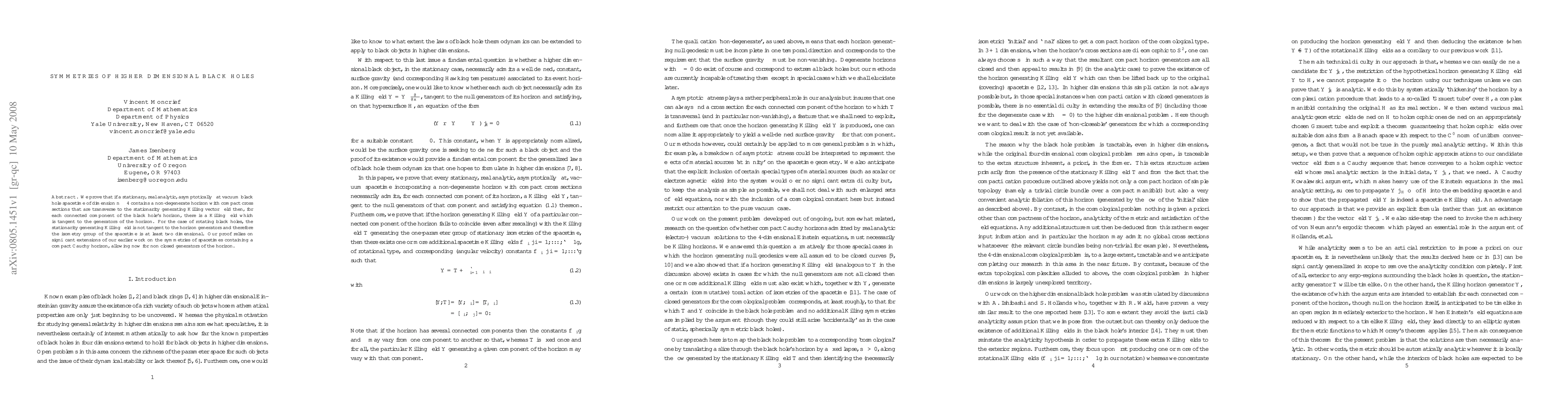 We prove that if a stationary, real analytic, asymptotically flat vacuum black hole spacetime of dimension $n\geq 4$ contains a non-degenerate horizon with compact cross sections that are transverse to the stationarity generating Killing vector field then, for each connected component of the black hole's horizon, there is a Killing field which is tangent to the generators of the horizon. For the case of rotating black holes, the stationarity generating Killing field is not tangent to the horizon generators and therefore the isometry group of the spacetime is at least two dimensional. Our proof relies on significant extensions of our earlier work on the symmetries of spacetimes containing a compact Cauchy horizon, allowing now for non closed generators of the horizon.