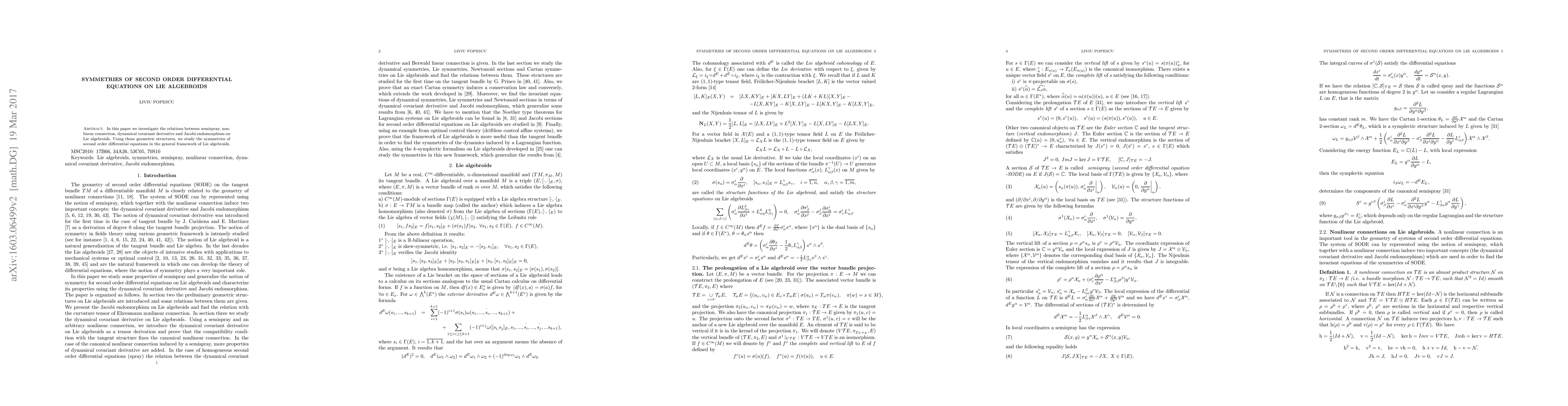 This paper explores symmetries of second-order differential equations on Lie algebroids, using geometric structures like semispray and Jacobi endomorphism to analyze symmetry relations.