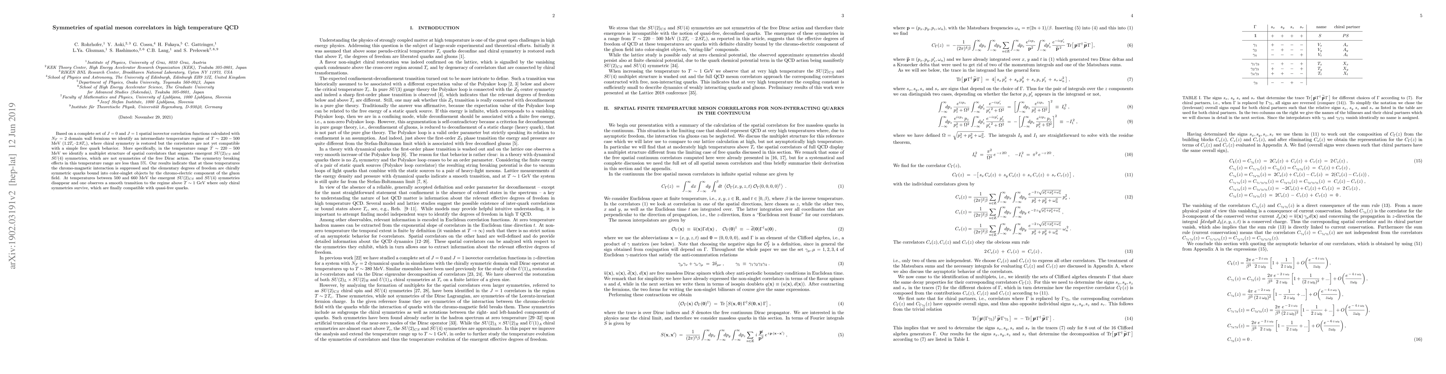 Based on a complete set of $J = 0$ and $J=1$ spatial isovector correlation functions calculated with $N_F = 2$ domain wall fermions we identify an intermediate temperature regime of $T \sim 220 - 500$ MeV ($1.2T_c$--$2.8T_c$), where chiral symmetry is restored but the correlators are not yet compatible with a simple free quark behavior. More specifically, in the temperature range $T \sim 220 - 500$ MeV we identify a multiplet structure of spatial correlators that suggests emergent $SU(2)_{CS}$ and $SU(4)$ symmetries, which are not symmetries of the free Dirac action. The symmetry breaking effects in this temperature range are less than 5%. Our results indicate that at these temperatures the chromo-magnetic interaction is suppressed and the elementary degrees of freedom are chirally symmetric quarks bound into color-singlet objects by the chromo-electric component of the gluon field. At temperatures between 500 and 660 MeV the emergent $SU(2)_{CS}$ and $SU(4)$ symmetries disappear and one observes a smooth transition to the regime above $T \sim 1$ GeV where only chiral symmetries survive, which are finally compatible with quasi-free quarks.