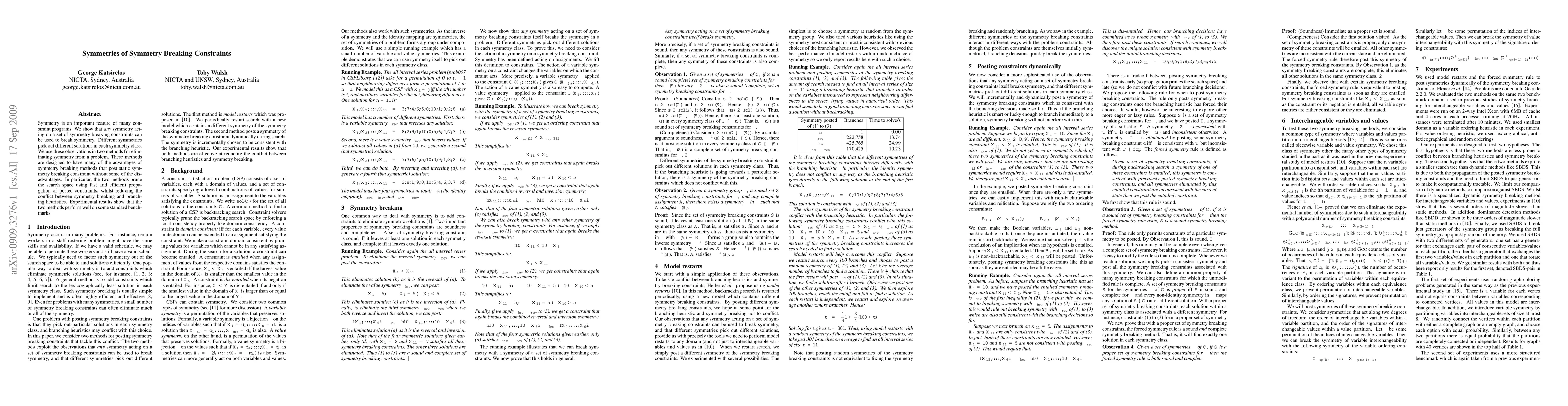 This paper explores how symmetries in constraint programs can be leveraged to break symmetry and identify different solutions within each symmetry class. It presents two methods for eliminating symmetry that efficiently prune the search space and reduce conflicts between symmetry breaking and branching heuristics, achieving good performance on standard benchmarks.