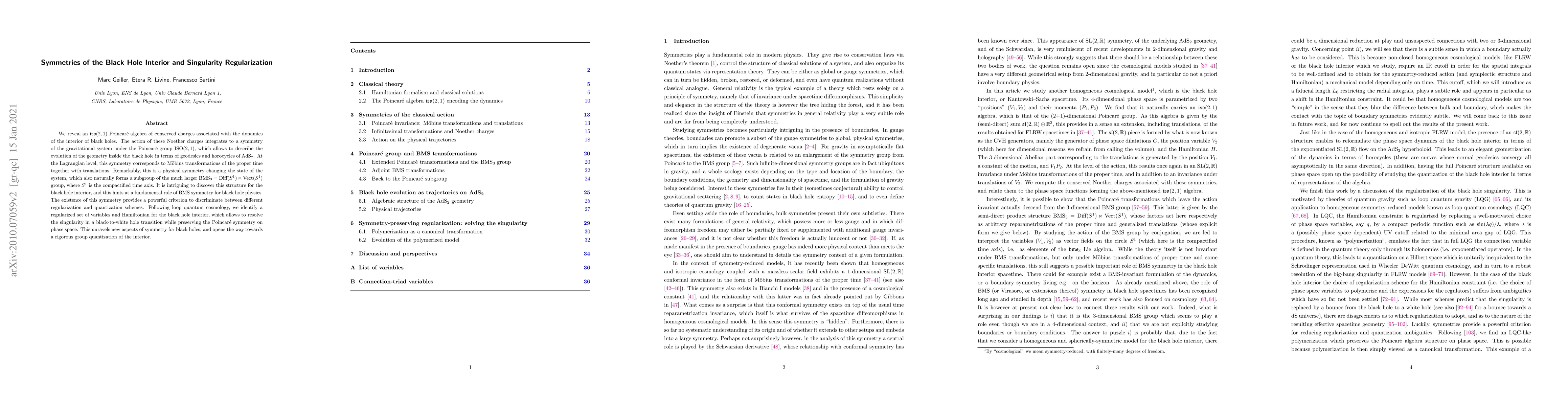 This paper reveals a $\mathfrak{iso}(2,1)$ Poincaré algebra symmetry in the dynamics of black hole interiors, allowing for the description of interior geometry via AdS$_2$ geodesics. It identifies a regularization scheme that resolves the singularity while preserving this symmetry, suggesting a fundamental role of BMS symmetry in black hole physics.