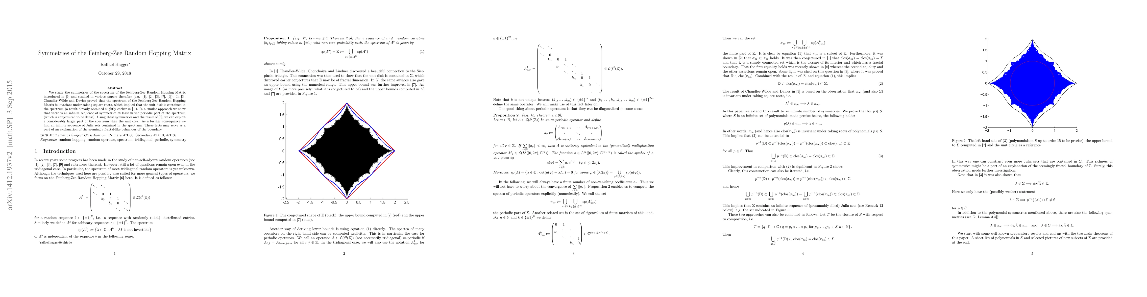 We study the symmetries of the spectrum of the Feinberg-Zee Random Hopping Matrix. Chandler-Wilde and Davies proved that the spectrum of the Feinberg-Zee Random Hopping Matrix is invariant under taking square roots, which implied that the unit disk is contained in the spectrum (a result already obtained slightly earlier by Chandler-Wilde, Chonchaiya and Lindner). In a similar approach we show that there is an infinite sequence of symmetries at least in the periodic part of the spectrum (which is conjectured to be dense). Using these symmetries, we can exploit a considerably larger part of the spectrum than the unit disk. As a further consequence we find an infinite sequence of Julia sets contained in the spectrum. These facts may serve as a part of an explanation of the seemingly fractal-like behaviour of the boundary.
