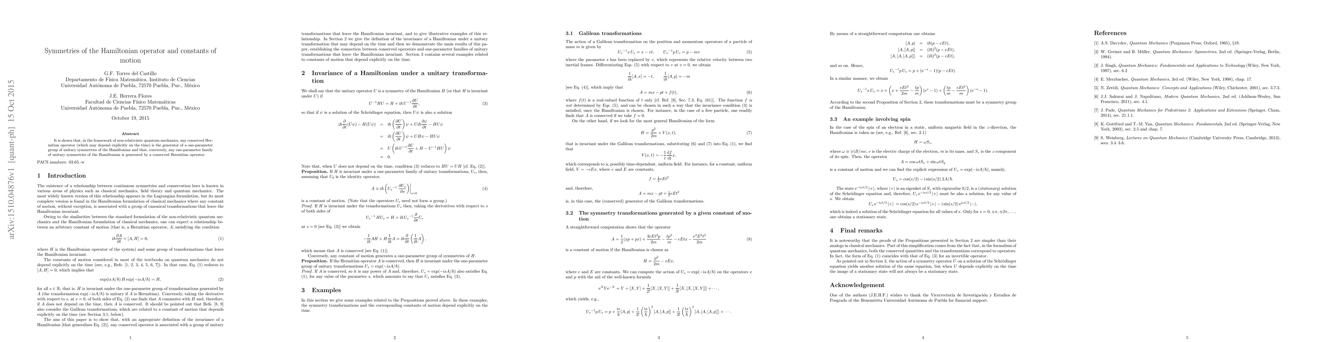 It is shown that, in the framework of non-relativistic quantum mechanics, any conserved Hermitian operator (which may depend explicitly on the time) is the generator of a one-parameter group of unitary symmetries of the Hamiltonian and that, conversely, any one-parameter family of unitary symmetries of the Hamiltonian is generated by a conserved Hermitian operator.