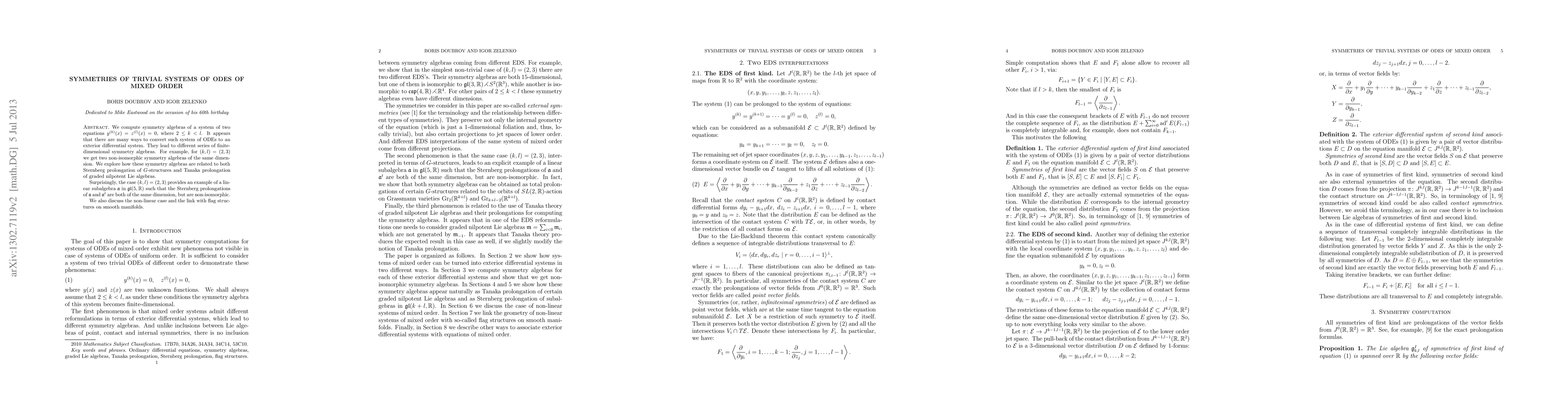 We compute symmetry algebras of a system of two equations y^(k)=z^(l)=0,