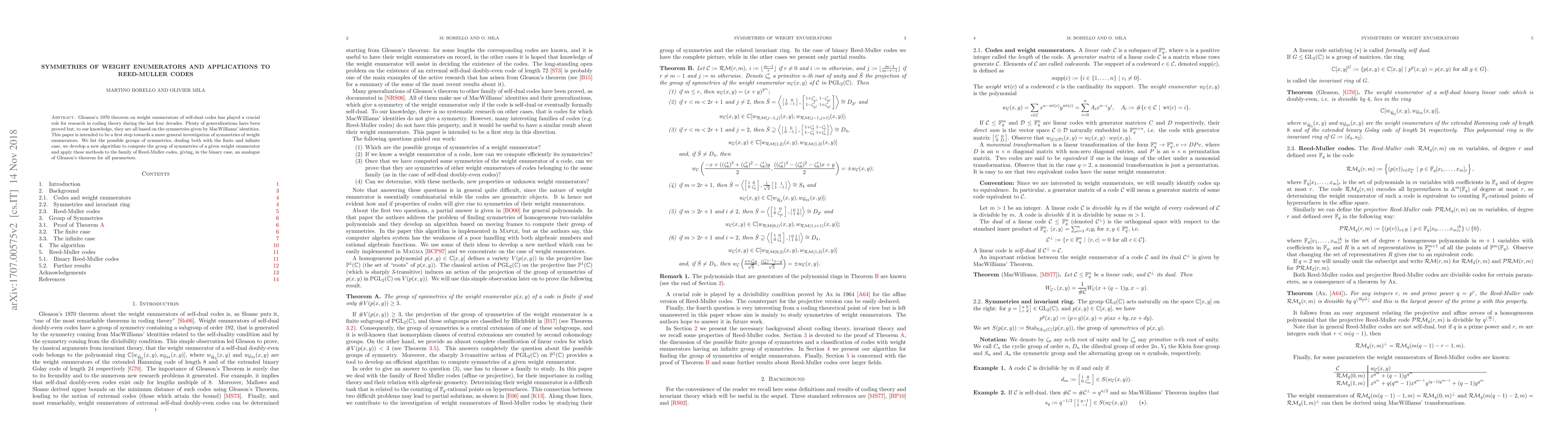 This paper investigates symmetries of weight enumerators beyond the traditional MacWilliams' identities, proposing a new algorithm to determine these symmetries. It applies the developed methods to Reed-Muller codes, extending Gleason's theorem to all parameters in the binary case.