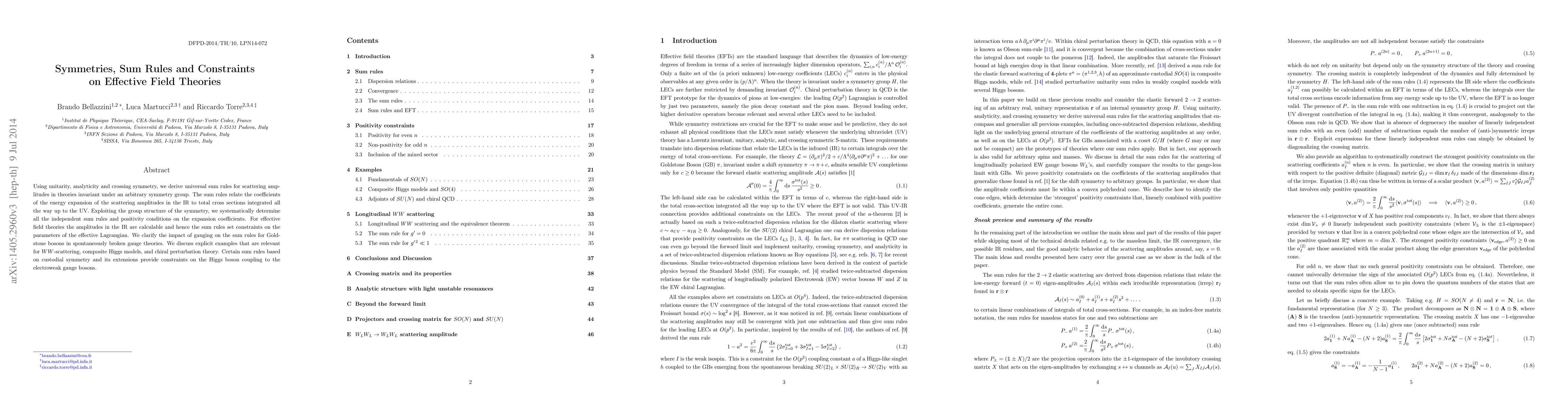 This paper derives universal sum rules for scattering amplitudes in theories with arbitrary symmetry groups, linking IR scattering amplitudes to total cross sections up to the UV. It sets constraints on effective field theories by analyzing the impact of gauging on Goldstone bosons and provides specific examples relevant to WW-scattering, composite Higgs models, and chiral perturbation theory.