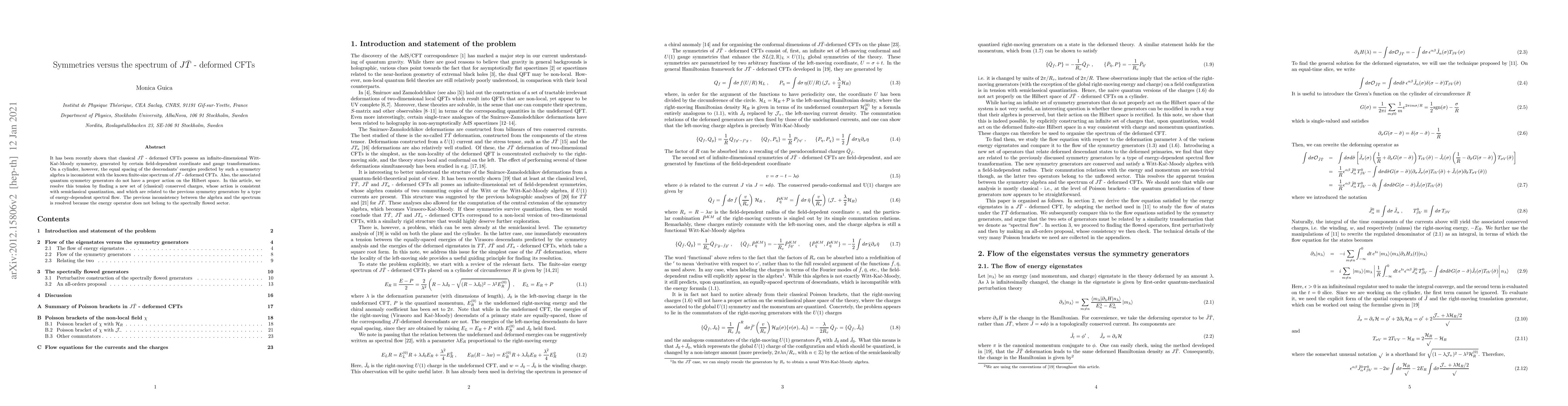 Researchers resolve a discrepancy between symmetries and energy spectra of $Jar T$-deformed CFTs by introducing new conserved charges that align with semi-classical quantization.