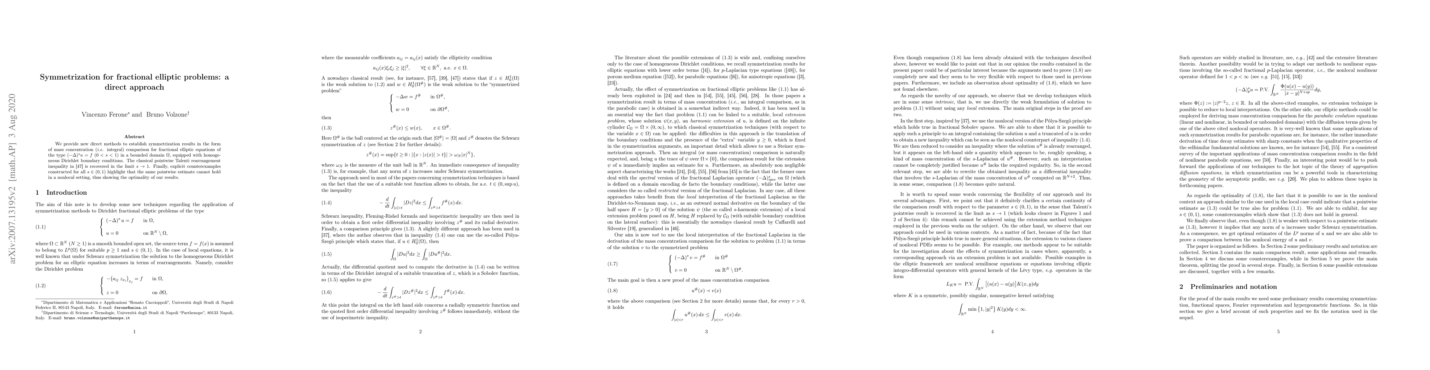 This paper presents new direct methods to establish symmetrization results for fractional elliptic equations, showing mass concentration comparisons. The classical Talenti inequality is recovered as the limit of $s$ approaching 1, while counterexamples demonstrate the optimality of the results in nonlocal settings.