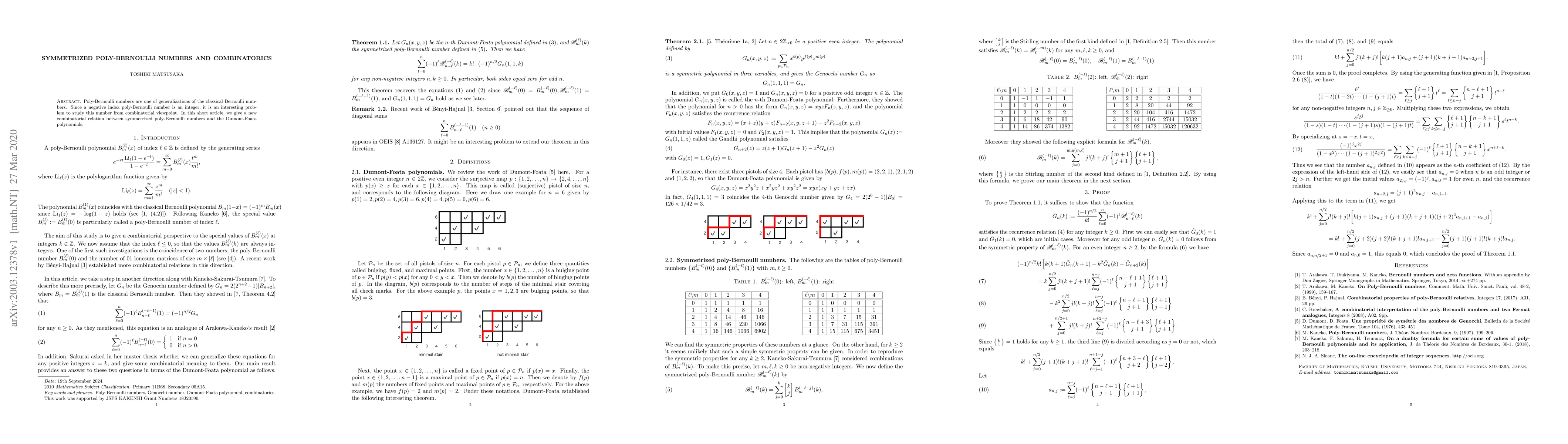 This paper introduces a new combinatorial relationship between symmetrized poly-Bernoulli numbers and Dumont-Foata polynomials, expanding on the study of generalized Bernoulli numbers from a combinatorial perspective.