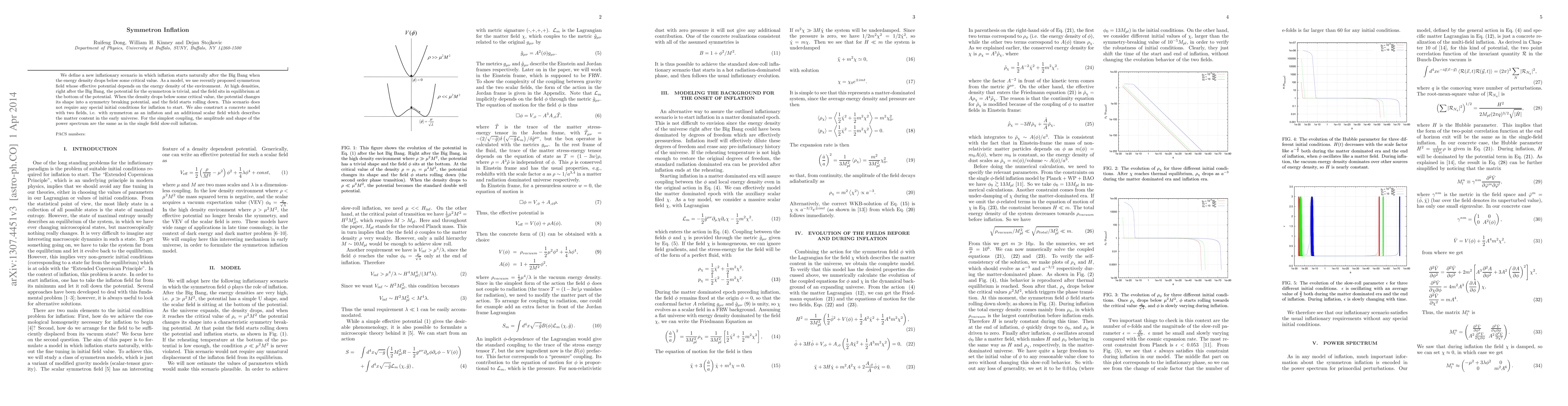 This paper proposes a new inflationary model based on a symmetron field whose potential changes with the energy density, initiating inflation naturally when the density drops below a critical value. The symmetron field, coupled with an additional scalar field, mimics single-field slow-roll inflation without requiring special initial conditions.