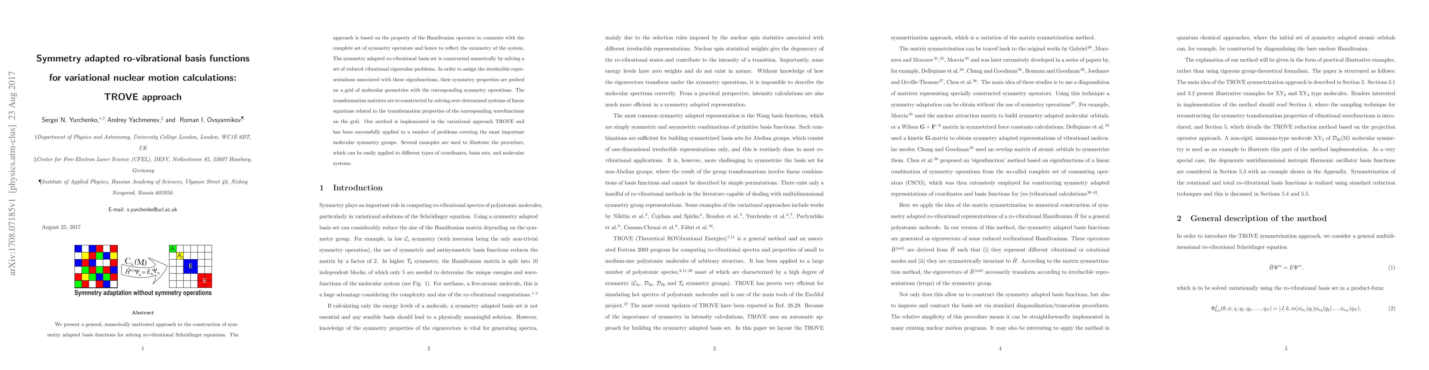 We present a general, numerically motivated approach to the construction of symmetry adapted basis functions for solving ro-vibrational Schr\"{o}dinger equations. The approach is based on the property of the Hamiltonian operator to commute with the complete set of symmetry operators and hence to reflect the symmetry of the system. The symmetry adapted ro-vibrational basis set is constructed numerically by solving a set of reduced vibrational eigenvalue problems. In order to assign the irreducible representations associated with these eigenfunctions, their symmetry properties are probed on a grid of molecular geometries with the corresponding symmetry operations. The transformation matrices are re-constructed by solving over-determined systems of linear equations related to the transformation properties of the corresponding wavefunctions on the grid. Our method is implemented in the variational approach TROVE and has been successfully applied to a number of problems covering the most important molecular symmetry groups. Several examples are used to illustrate the procedure, which can be easily applied to different types of coordinates, basis sets, and molecular systems.