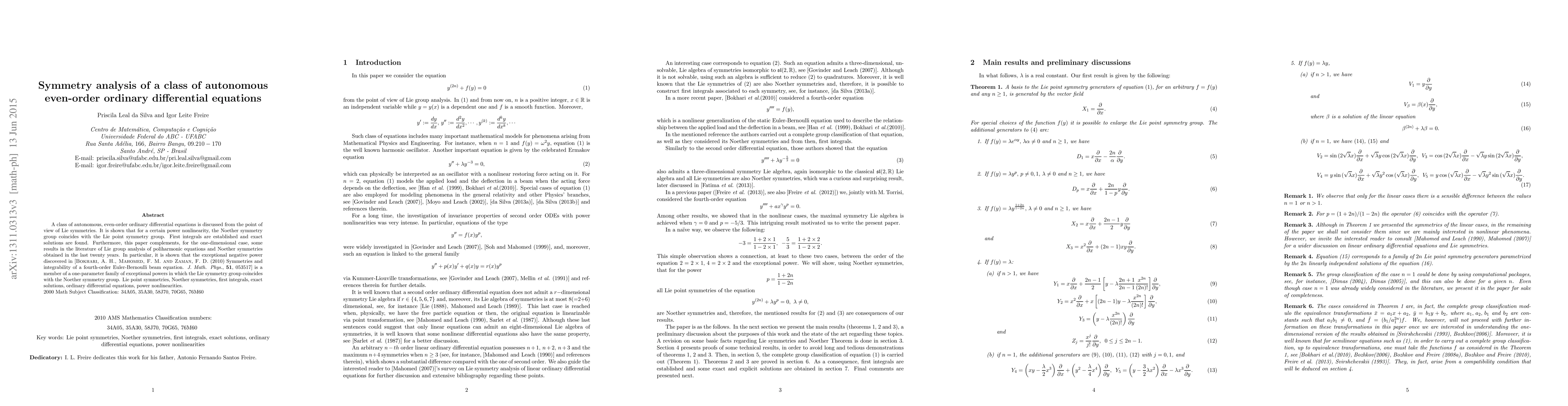 A class of autonomous, even-order ordinary differential equations is discussed from the point of view of Lie symmetries. It is shown that for a certain power nonlinearity, the Noether symmetry group coincides with the Lie point symmetry group. First integrals are established and exact solutions are found. Furthermore, this paper complements, for the one-dimensional case, some results in the literature of Lie group analysis of poliharmonic equations and Noether symmetries obtained in the last twenty years. In particular, it is shown that the exceptional negative power discovered in [A. H. Bokhari, F. M. Mahomed and F. D. Zaman, Symmetries and integrability of a fourth-order Euler-Bernoulli beam equation, J. Math. Phys., vol. 51, 053517, (2010)] is a member of an one-parameter family of exceptional powers in which the Lie symmetry group coincides with the Noether symmetry group.