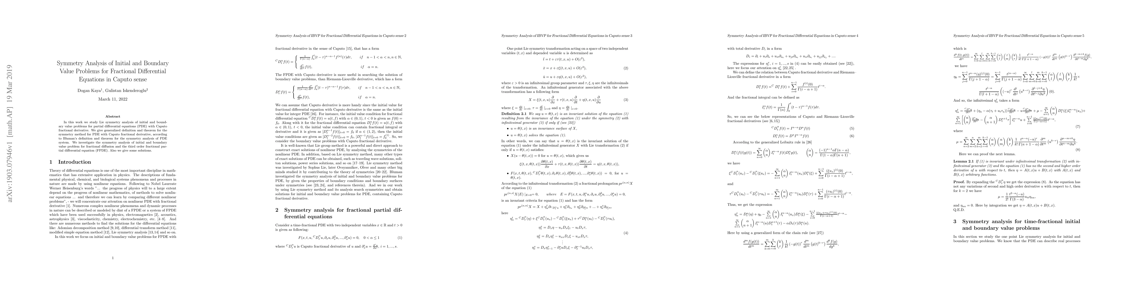This paper employs Lie symmetry analysis to explore initial and boundary value problems for partial differential equations with Caputo fractional derivatives. It presents a generalized symmetry method and applies it to fractional diffusion and third-order fractional partial differential equations, providing some illustrative solutions.