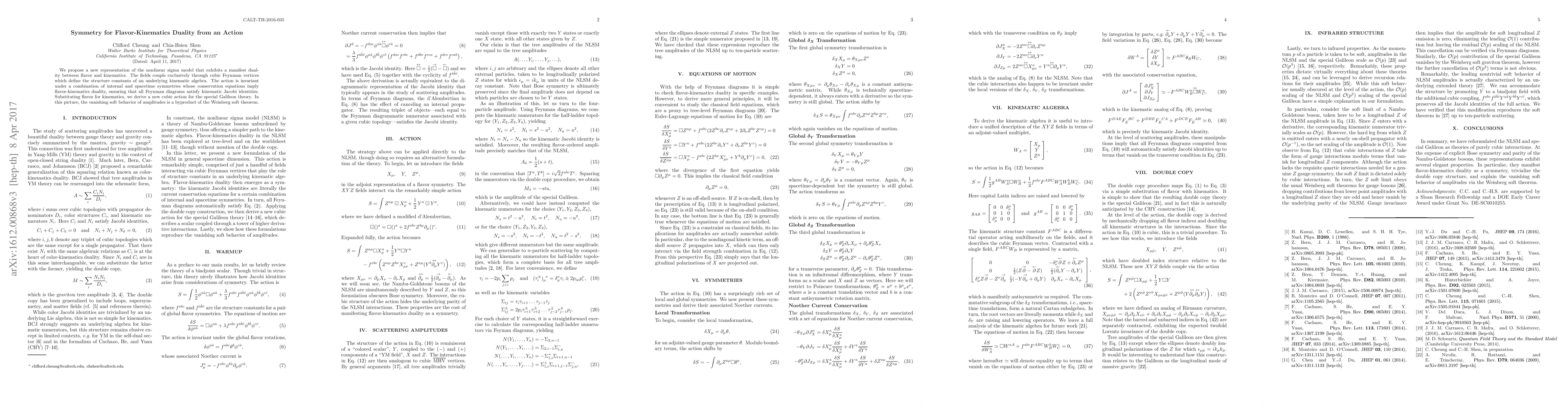 We propose a new representation of the nonlinear sigma model that exhibits a manifest duality between flavor and kinematics. The fields couple exclusively through cubic Feynman vertices which also serve as the structure constants of an underlying kinematic algebra. The action is invariant under a combination of internal and spacetime symmetries whose conservation equations imply flavor-kinematics duality, ensuring that all Feynman diagrams satisfy kinematic Jacobi identities. Substituting flavor for kinematics, we derive a new cubic action for the special Galileon theory. In this picture, the vanishing soft behavior of amplitudes is a byproduct of the Weinberg soft theorem.