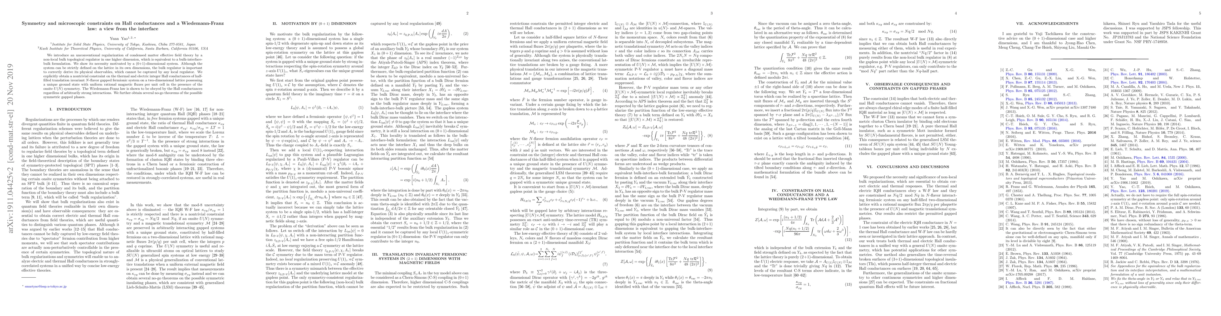 We introduce an unconventional regularization of condensed matter effective field theory by a non-local bulk topological regulator in one higher dimension, which is equivalent to a bulk-interface-bulk formulation. We show its necessity motivated by a (0+1)-dimensional system. Although the system can be strictly defined on the lattice in its own dimensions, the bulk regulator is important to derive its correct physical observables, which cannot be captured by any local regulator. We explicitly obtain a constraint on the thermal and electric integer Hall conductances of half-filled translation invariant $N$-flavor gapped fermionic system on a square lattice possessing a unique ground state with uniform rational magnetic fluxes per unit cell in the presence of the onsite $U(N)$ symmetry. The Wiedemann-Franz law is shown to be obeyed by the Hall conductances regardless of arbitrarily strong interactions. We further obtain no-go theorems on the possible symmetric gapped phases.