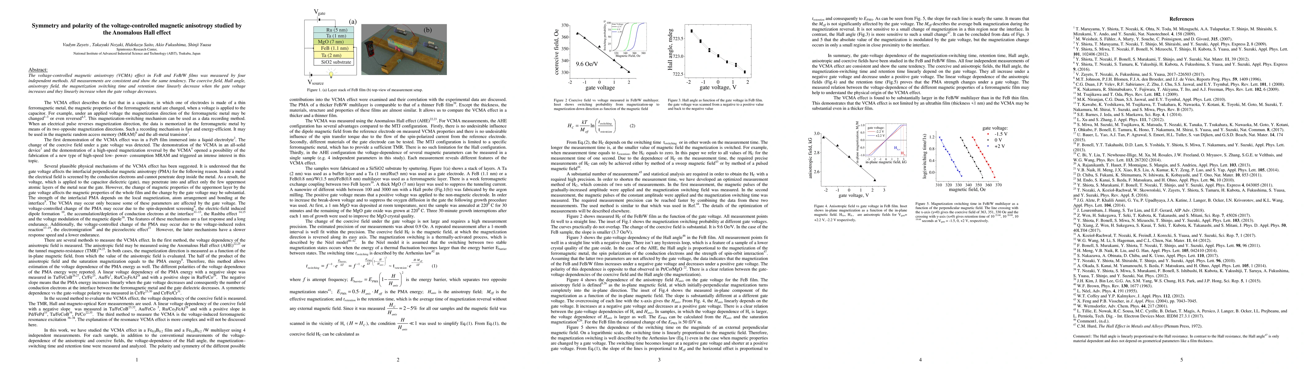 Summary: Research demonstrates that voltage-controlled magnetic anisotropy (VCMA) in FeB and FeB/W films exhibits a linear relationship with gate voltage, with magnetic properties decreasing as voltage increases and vice versa, confirmed by four independent measurement methods.