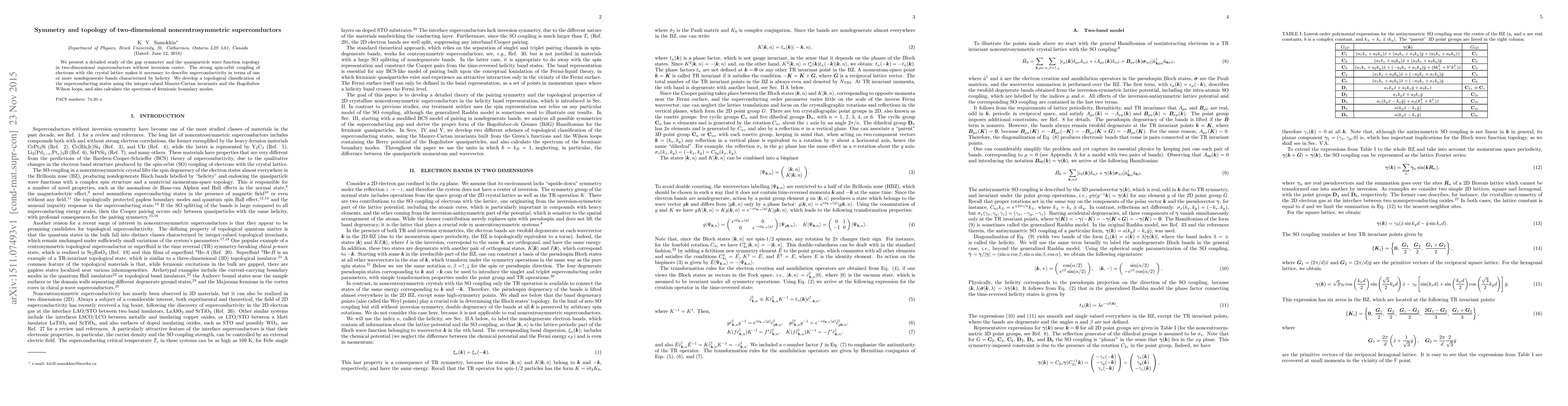 We present a detailed study of the gap symmetry and the quasiparticle wave function topology in two-dimensional superconductors without inversion center. The strong spin-orbit coupling of electrons with the crystal lattice makes it necessary to describe superconductivity in terms of one or more nondegenerate bands characterized by helicity. We develop a topological classification of the superconducting states using the integer-valued Maurer-Cartan invariants and the Bogoliubov Wilson loops, and also calculate the spectrum of fermionic boundary modes.