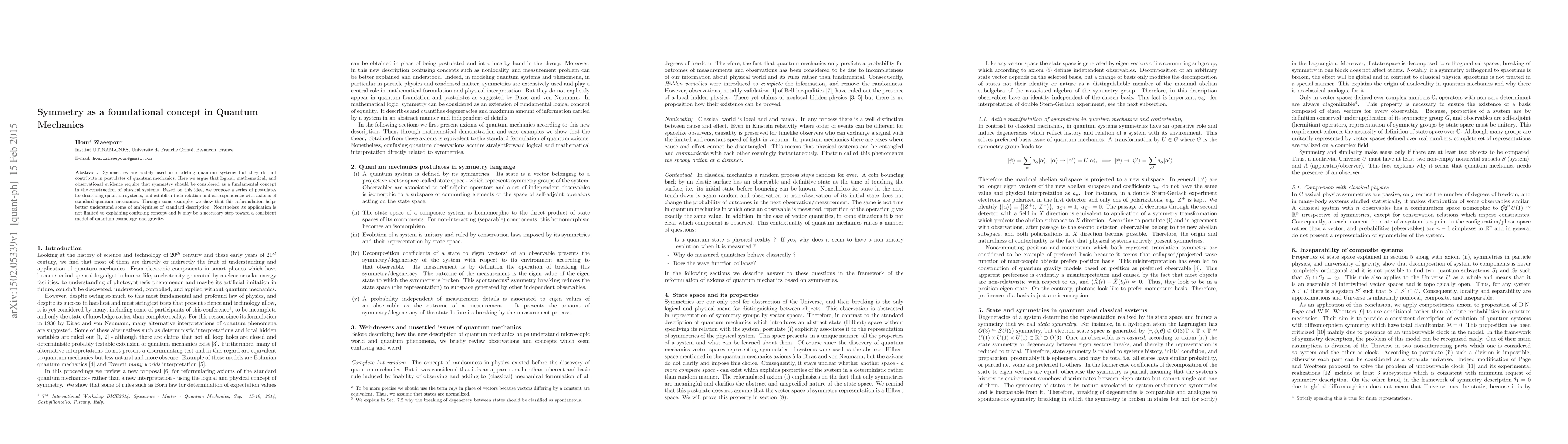 This paper argues that symmetry should be considered a fundamental concept in quantum mechanics, proposing new postulates that incorporate symmetry and demonstrating their correspondence with standard quantum mechanics. The reformulation aims to resolve ambiguities and may lead to a more consistent model of quantum cosmology and gravity.