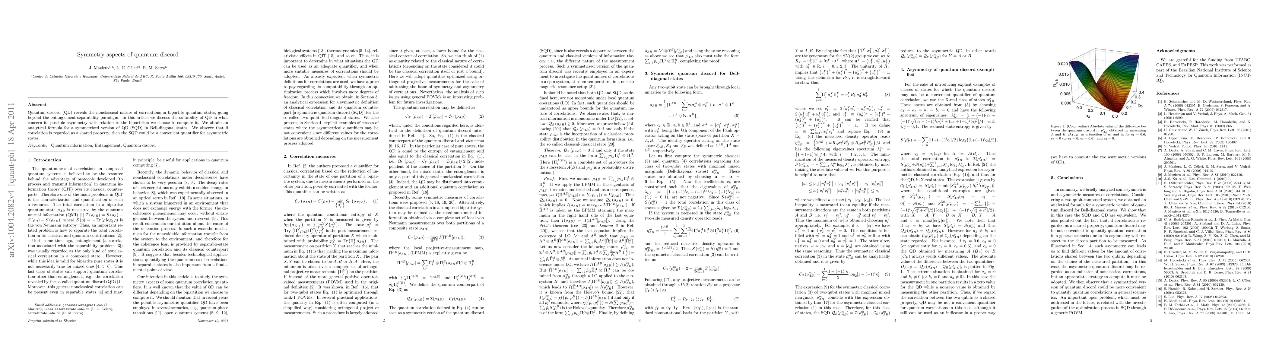 Quantum discord (QD) reveals the nonclassical nature of correlations in bipartite quantum states, going beyond the entanglement-separability paradigm. In this article we discuss the suitability of QD in what concern its possible asymmetry with relation to the bipartition we choose to compute it. We obtain an analytical formula for a symmetrized version of QD (SQD) in Bell-diagonal states. We observe that if correlation is regarded as a shared property, then the SQD could be a convenient quantifier for asymmetric states.