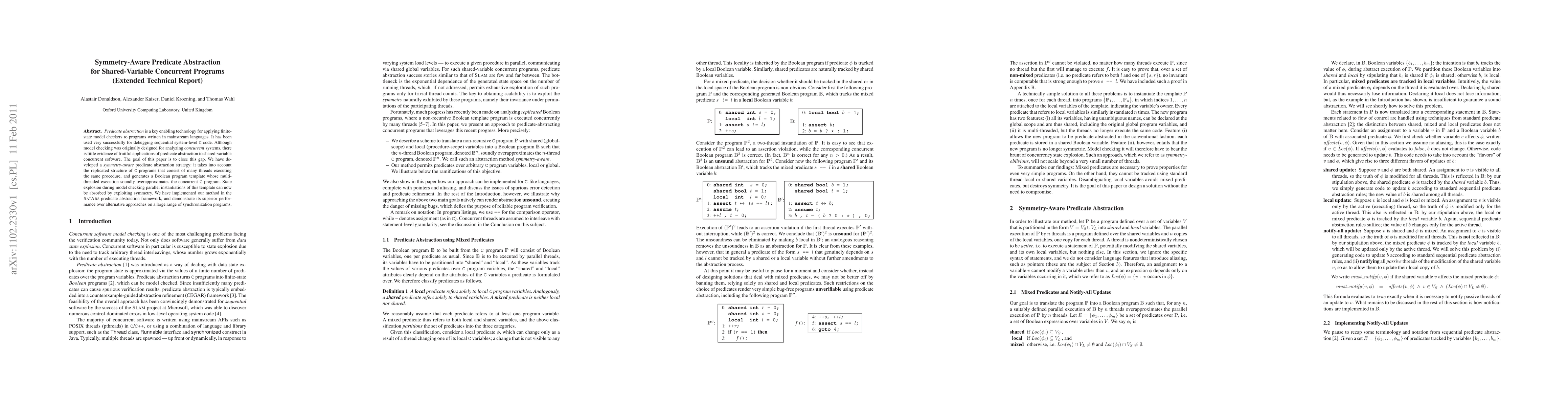 This paper introduces a symmetry-aware predicate abstraction strategy to apply finite-state model checking to shared-variable concurrent C programs. The method leverages the replicated structure of multi-threaded C programs to generate a Boolean program template, which is then checked for state explosion by exploiting symmetry, demonstrating superior performance over existing approaches.