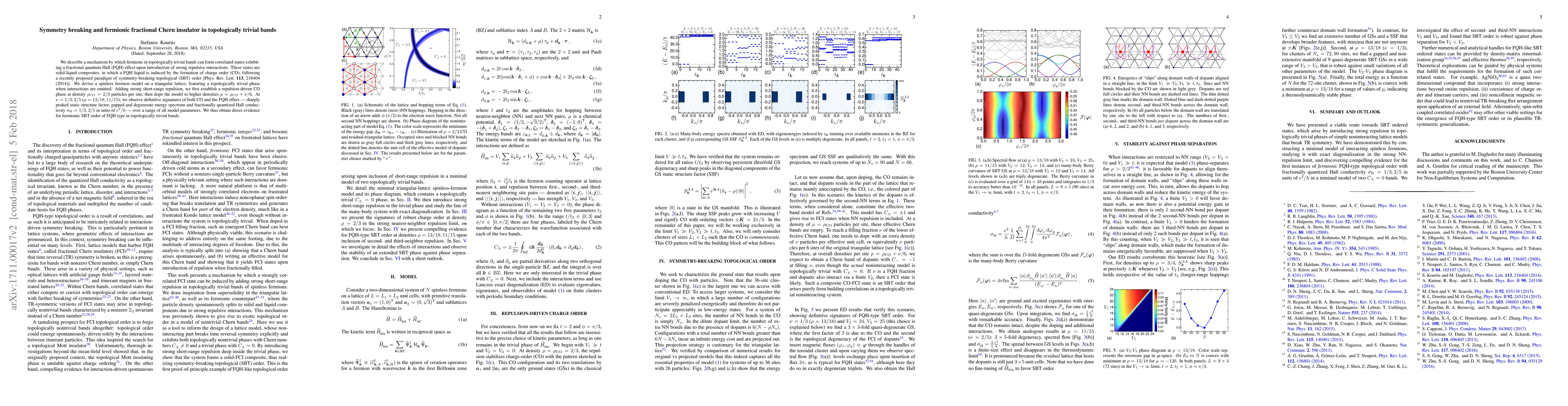 This paper presents a mechanism for fermions in topologically trivial bands to exhibit fractional quantum Hall (FQH) effects through strong repulsive interactions, leading to a composite solid-liquid state. The study reveals a spinless fermion model on a triangular lattice that shows a repulsion-driven charge order phase, followed by doping to higher densities where FQH signatures emerge, demonstrating fermionic symmetry-breaking topological order.