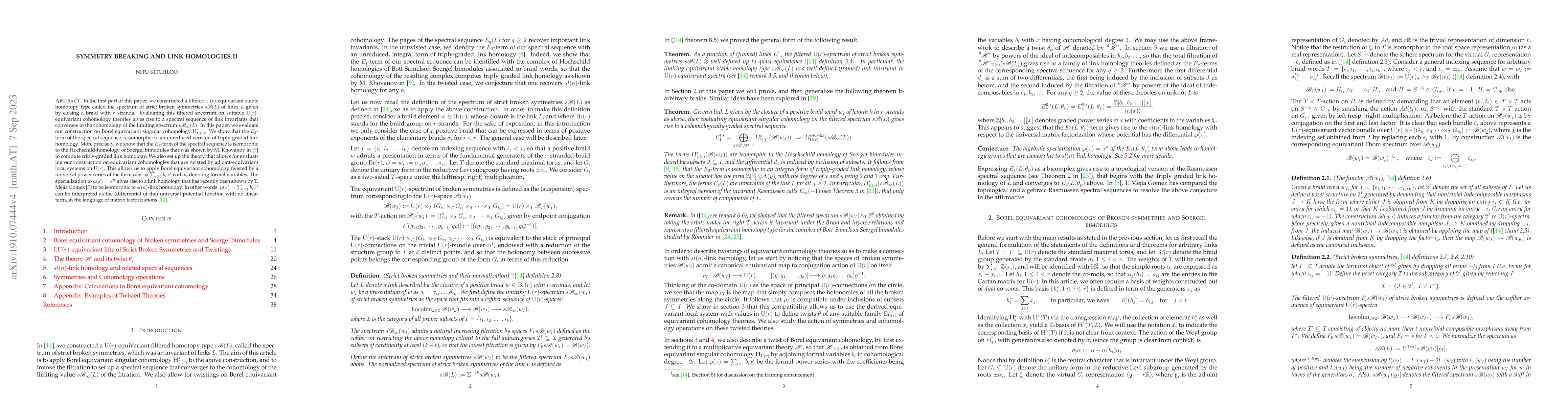 This paper evaluates the spectrum of strict broken symmetries on Borel equivariant singular cohomology, showing that the resulting spectral sequence's E_2-term corresponds to triply-graded link homology. The E_1-term is isomorphic to Hochschild-homology of Soergel bimodules, and the theory is extended to twisted equivariant cohomologies, leading to a link homology isomorphic to sl(n)-link homology.