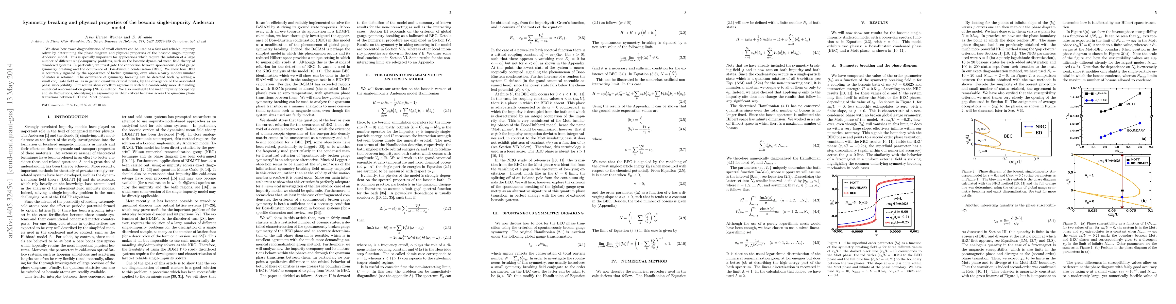 The study utilizes exact diagonalization of small clusters to explore the bosonic single-impurity Anderson model, revealing symmetry breaking as a signal for Bose-Einstein condensation (BEC). The results align closely with numerical renormalization group (NRG) methods and highlight asymmetric critical behavior in mean occupancy fluctuations.
