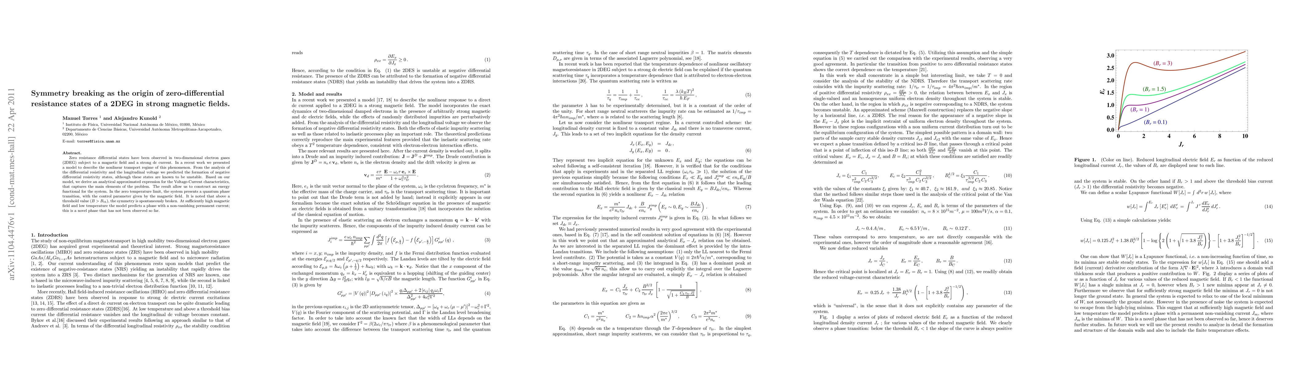 This paper proposes a model for the zero-differential resistance states in 2DEGs under strong magnetic fields, showing that symmetry breaking leads to a novel phase with permanent current. The model predicts a quantum phase transition at a critical magnetic field, beyond which the system exhibits a non-vanishing current.