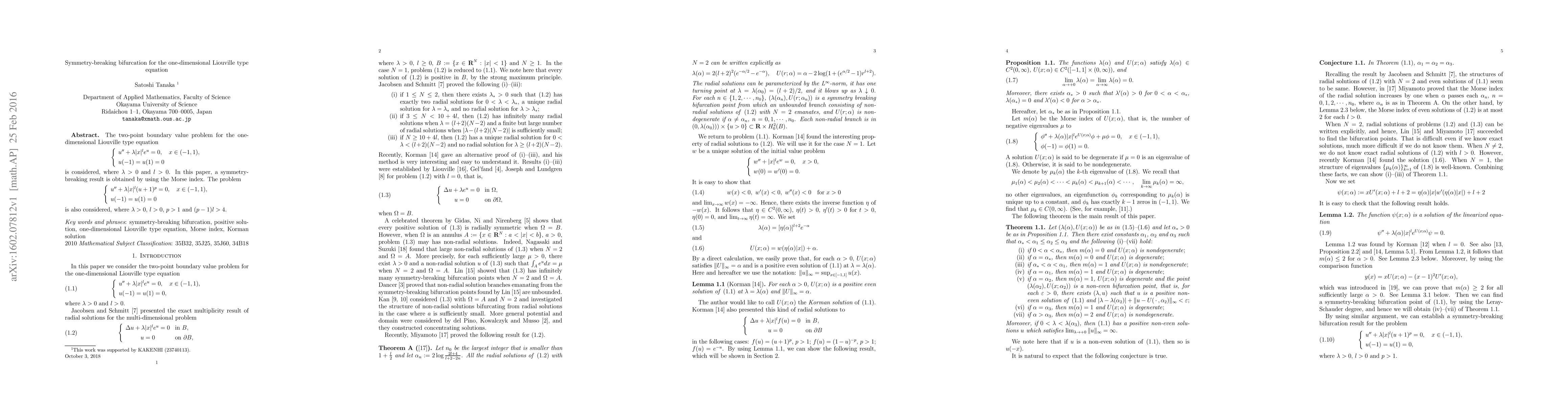The two-point boundary value problem for the one-dimensional Liouville type equation is considered. In this paper, a symmetry-breaking result is obtained by using the Morse index.