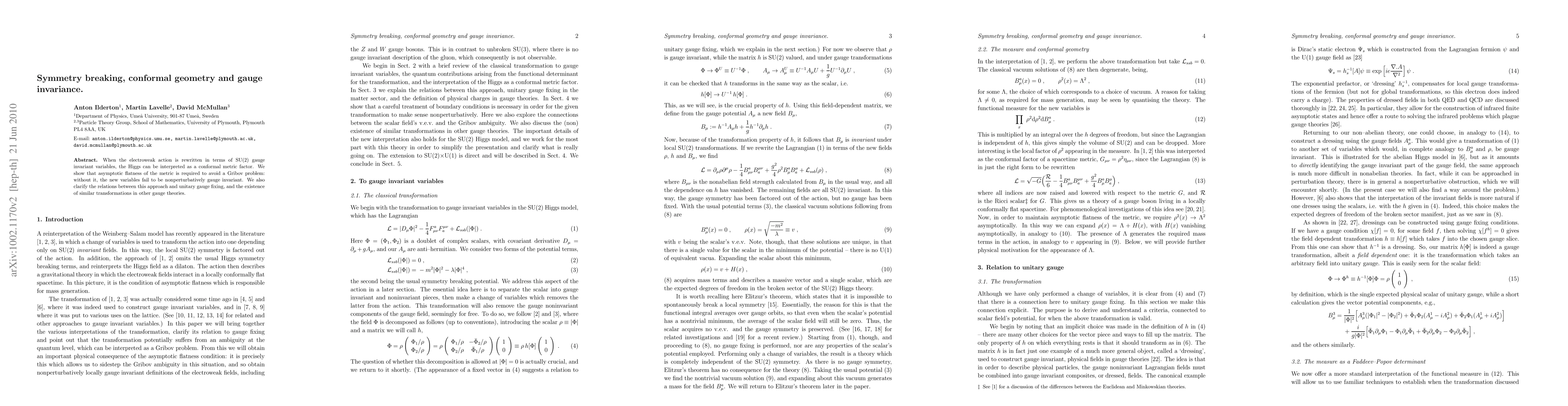 When the electroweak action is rewritten in terms of SU(2) gauge invariant variables, the Higgs can be interpreted as a conformal metric factor. We show that asymptotic flatness of the metric is required to avoid a Gribov problem: without it, the new variables fail to be nonperturbatively gauge invariant. We also clarify the relations between this approach and unitary gauge fixing, and the existence of similar transformations in other gauge theories.