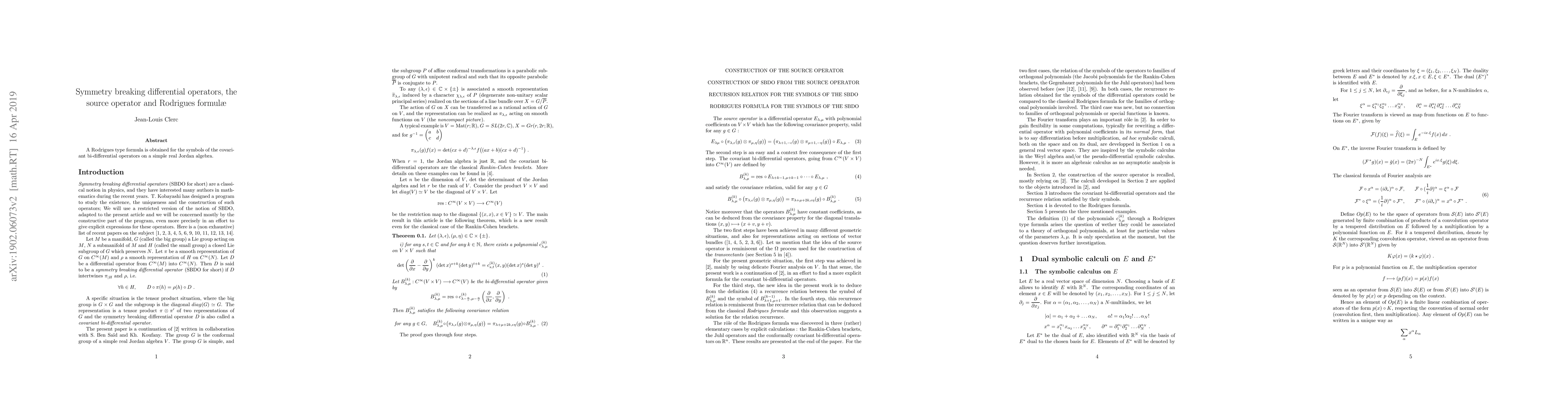 Summary: This paper derives a Rodrigues-type formula for the symbols of covariant bi-differential operators on a simple Jordan algebra, highlighting symmetry breaking aspects and the source operator.