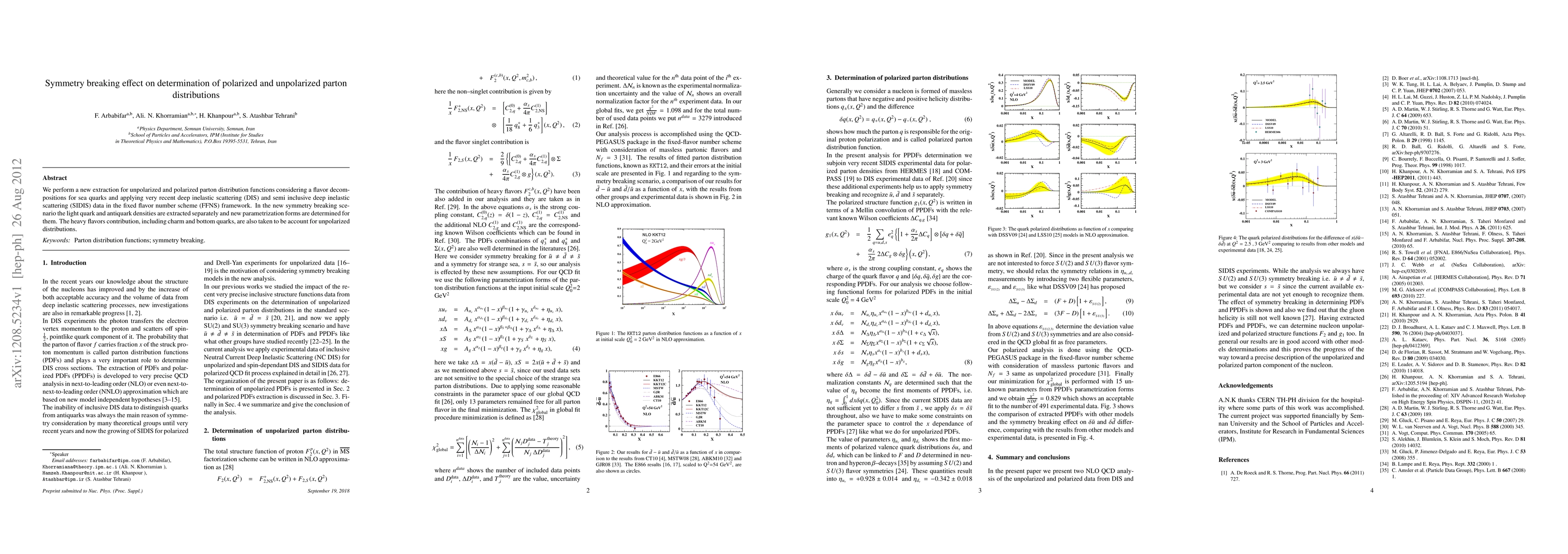 We perform a new extraction for unpolarized and polarized parton distribution functions considering a flavor decompositions for sea quarks and applying very recent deep inelastic scattering (DIS) and semi inclusive deep inelastic scattering (SIDIS) data in the fixed flavor number scheme (FFNS) framework. In the new symmetry breaking scenario the light quark and antiquark densities are extracted separately and new parametrization forms are determined for them. The heavy flavors contribution, including charm and bottom quarks, are also taken to be account for unpolarized distributions.