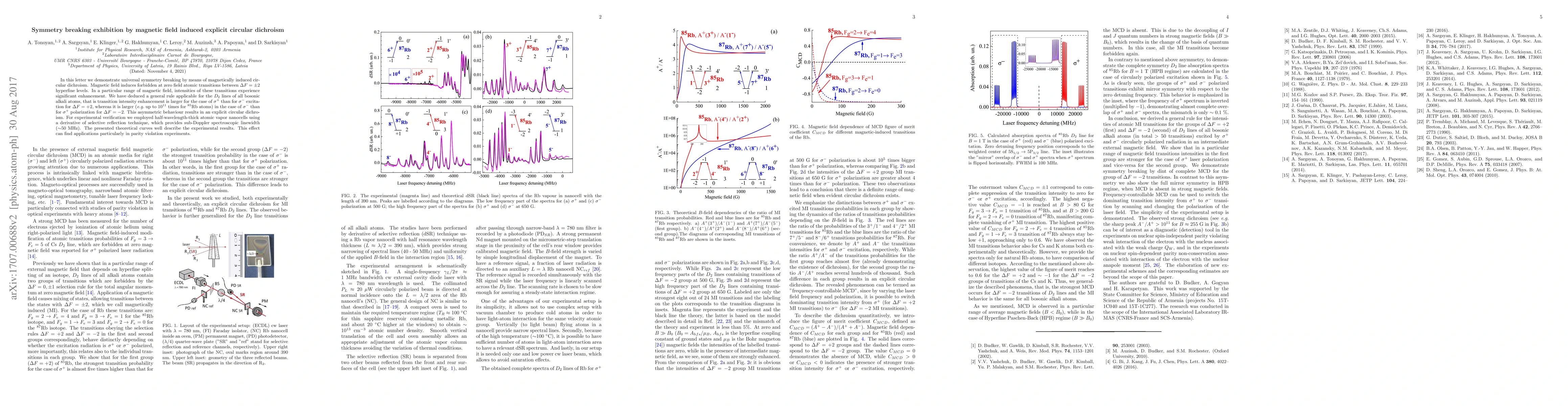 This paper demonstrates magnetic field-induced symmetry breaking through enhanced atomic transitions between hyperfine levels, leading to significant circular dichroism. The study reveals that the transition intensity is much higher for $\sigma^-$ polarization in $\Delta F = -2$ states and for $\sigma^+$ polarization in $\Delta F = +2$ states, providing a general rule for bosonic alkali atoms.