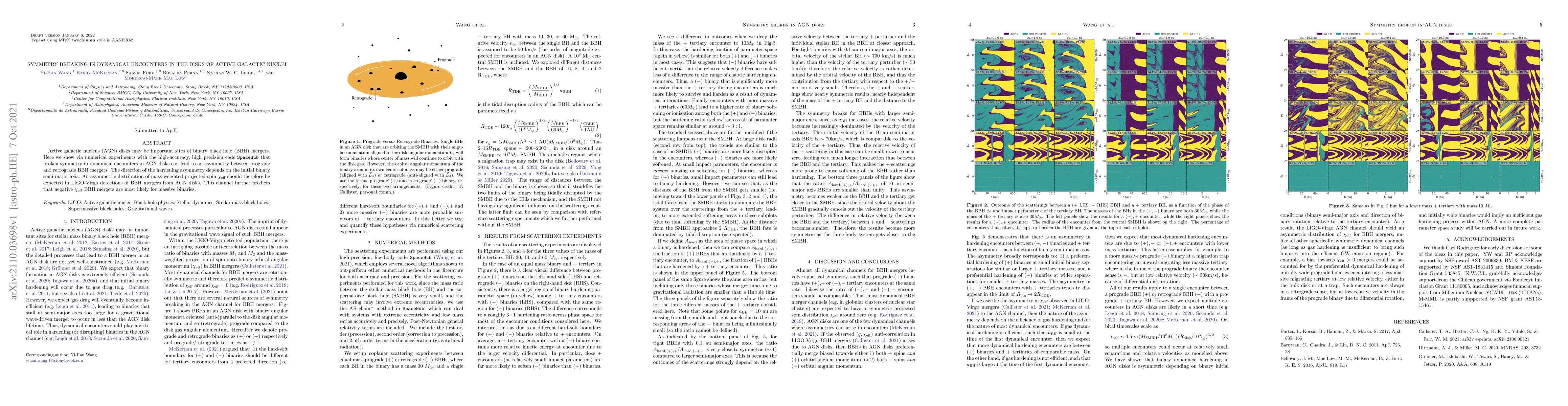 Active galactic nucleus (AGN) disks may be important sites of binary black hole (BBH) mergers. Here we show via numerical experiments with the high-accuracy, high precision code {\tt SpaceHub} that broken symmetry in dynamical encounters in AGN disks can lead to an asymmetry between prograde and retrograde BBH mergers. The direction of the hardening asymmetry depends on the initial binary semi-major axis. An asymmetric distribution of mass-weighted projected spin $\chi_{\rm eff}$ should therefore be expected in LIGO-Virgo detections of BBH mergers from AGN disks. This channel further predicts that negative $\chi_{\rm eff}$ BBH mergers are most likely for massive binaries.