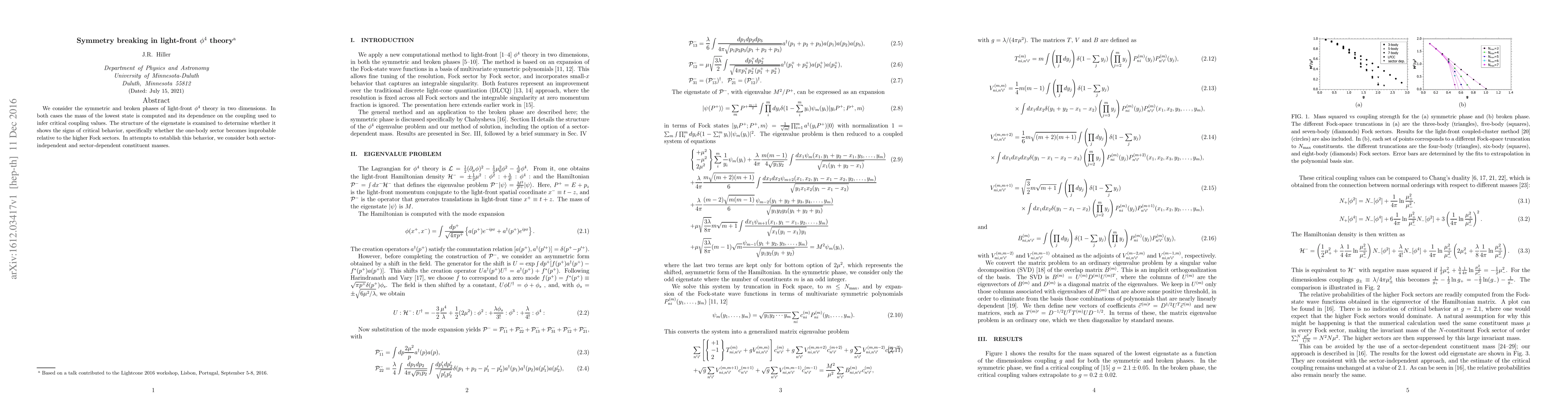 This paper investigates the symmetry breaking in two-dimensional light-front $\phi^4$ theory, computing the mass of the lowest state in both symmetric and broken phases to determine critical coupling values. It examines the structure of the eigenstate to identify signs of critical behavior, considering both independent and dependent constituent masses.
