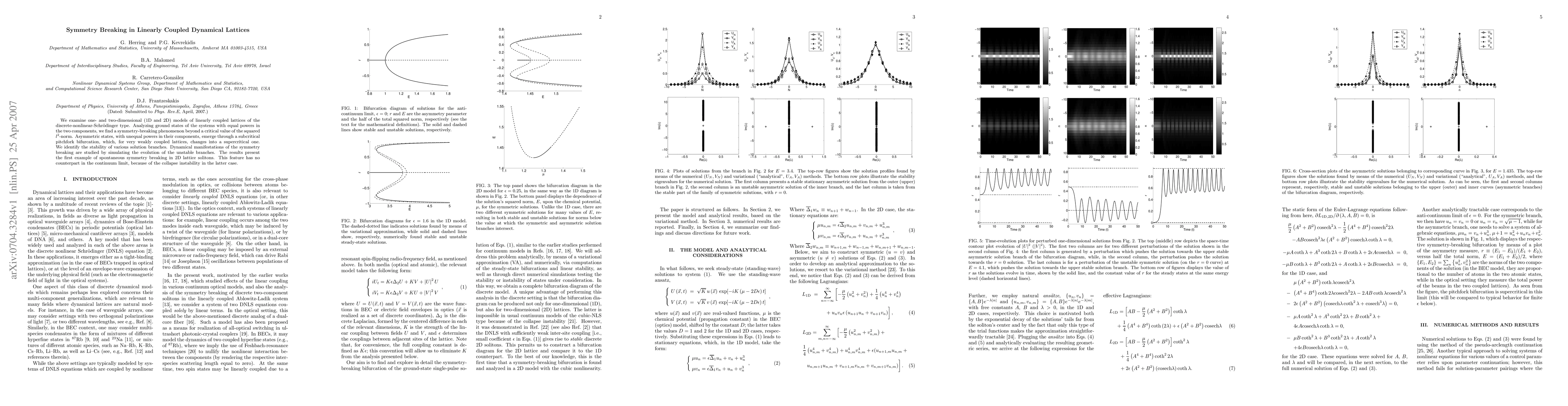 This paper investigates linearly coupled lattices of discrete-nonlinear-Schrödinger systems, revealing spontaneous symmetry breaking in 2D lattice solitons above a critical norm value. The transition from symmetric to asymmetric states occurs via a pitchfork bifurcation, which can be subcritical or supercritical depending on coupling strength.