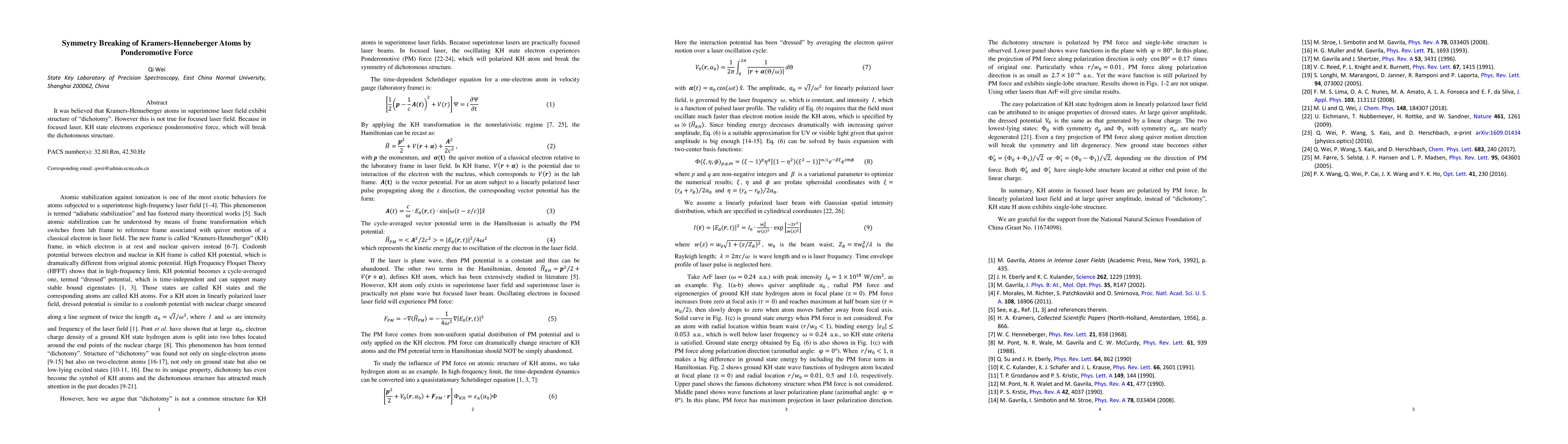 Summary: This paper reveals that the "dichotomy" structure of Kramers-Henneberger atoms in superintense laser fields is disrupted by the ponderomotive force in a focused laser field, challenging previous assumptions about the behavior of electrons in such conditions.