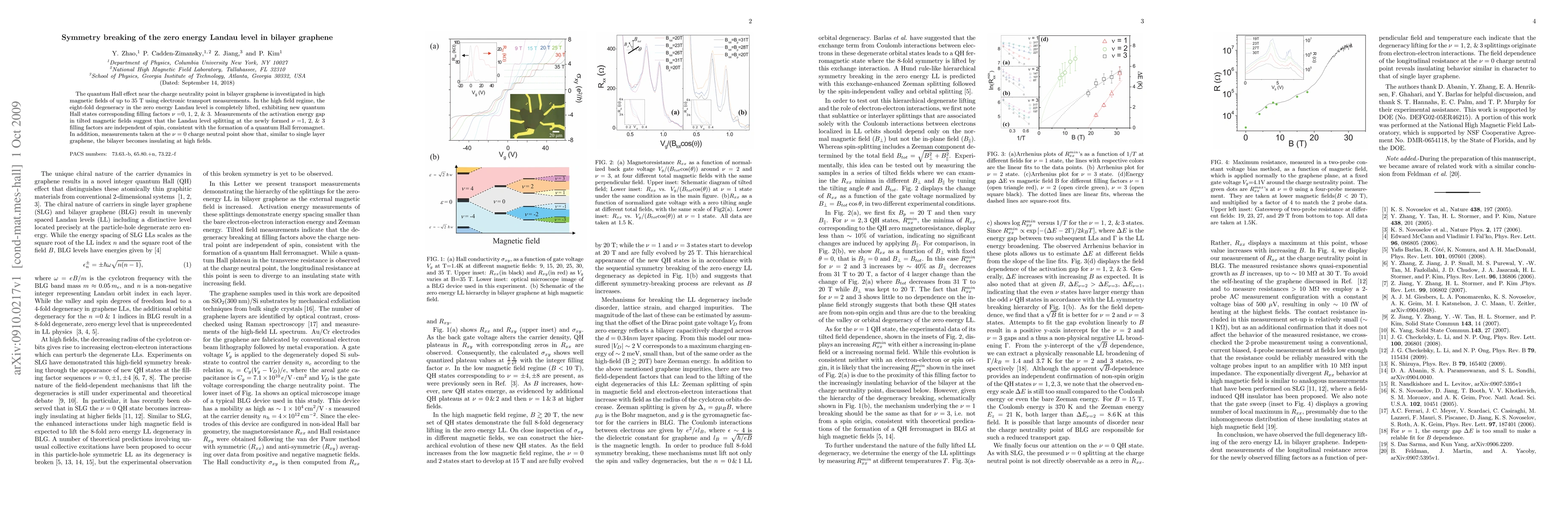 This research investigates the quantum Hall effect in bilayer graphene near charge neutrality, revealing the lifting of degeneracy in the zero energy Landau level under high magnetic fields, leading to new quantum Hall states. The study suggests the formation of a quantum Hall ferromagnet and an insulating state at the charge neutral point.