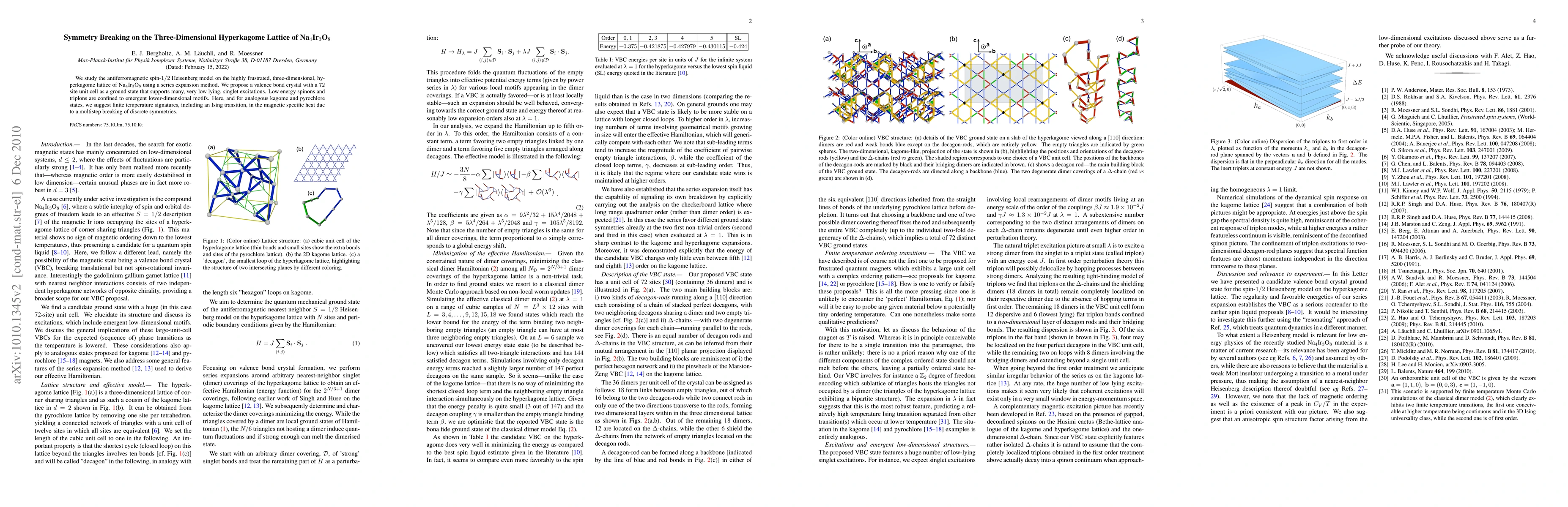 We study the antiferromagnetic spin-1/2 Heisenberg model on the highly frustrated, three-dimensional, hyperkagome lattice of Na_4Ir_3O_8 using a series expansion method. We propose a valence bond crystal with a 72 site unit cell as a ground state that supports many, very low lying, singlet excitations. Low energy spinons and triplons are confined to emergent lower-dimensional motifs. Here, and for analogous kagome and pyrochlore states, we suggest finite temperature signatures, including an Ising transition, in the magnetic specific heat due to a multistep breaking of discrete symmetries.